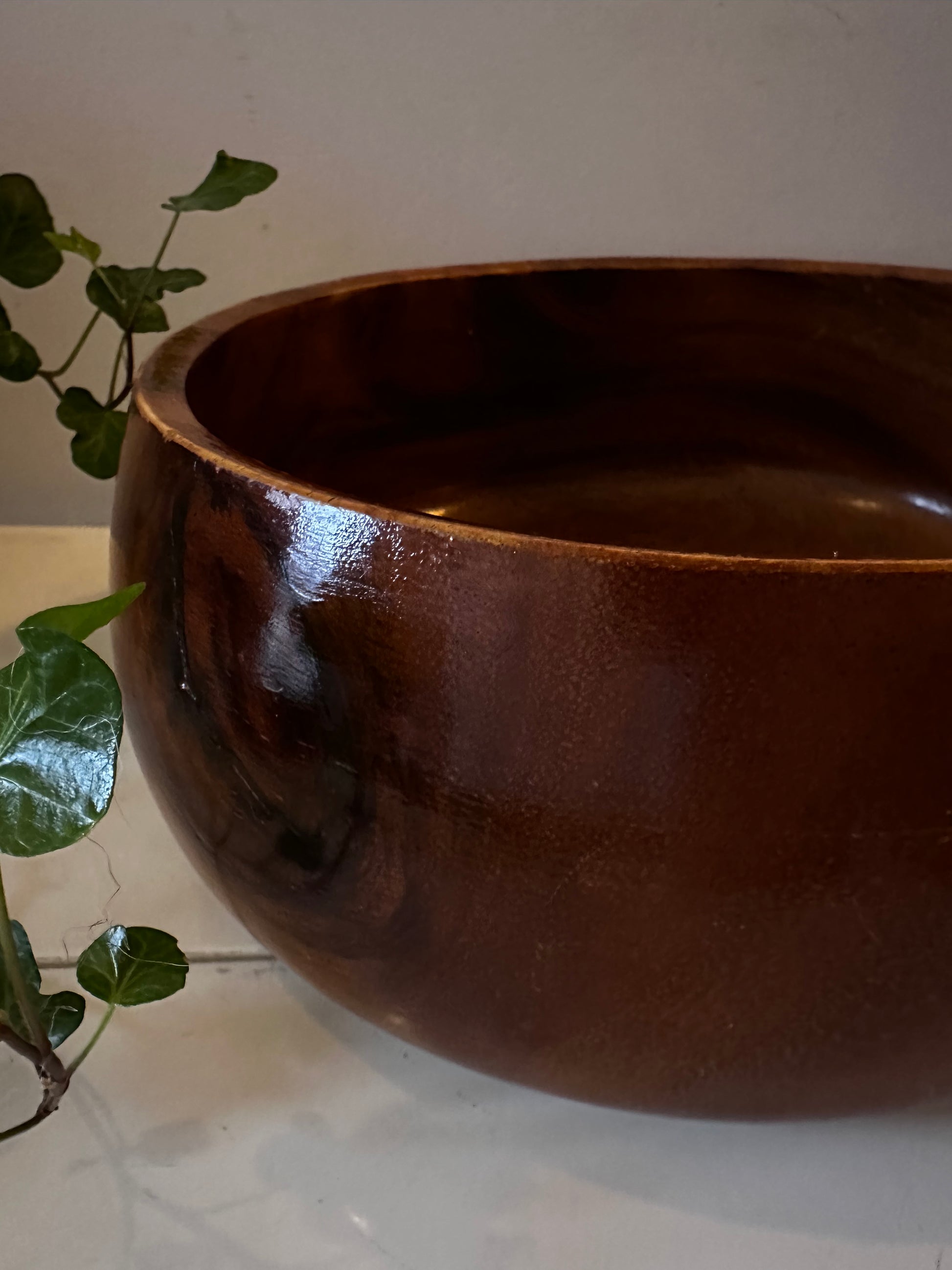 Prachtige teak houten schaal. In een mooie vintage staat met lichte gebruiksporen. Hout heeft een mooi nerven patroon.