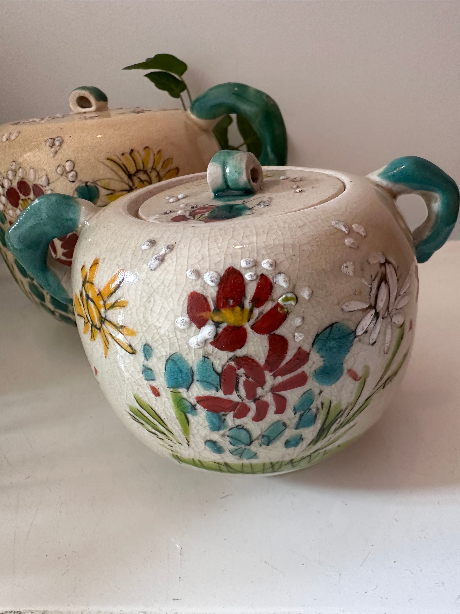 Hoe leuk zijn deze twee? Handbeschilderd met vrolijke bloemen en turquoise details