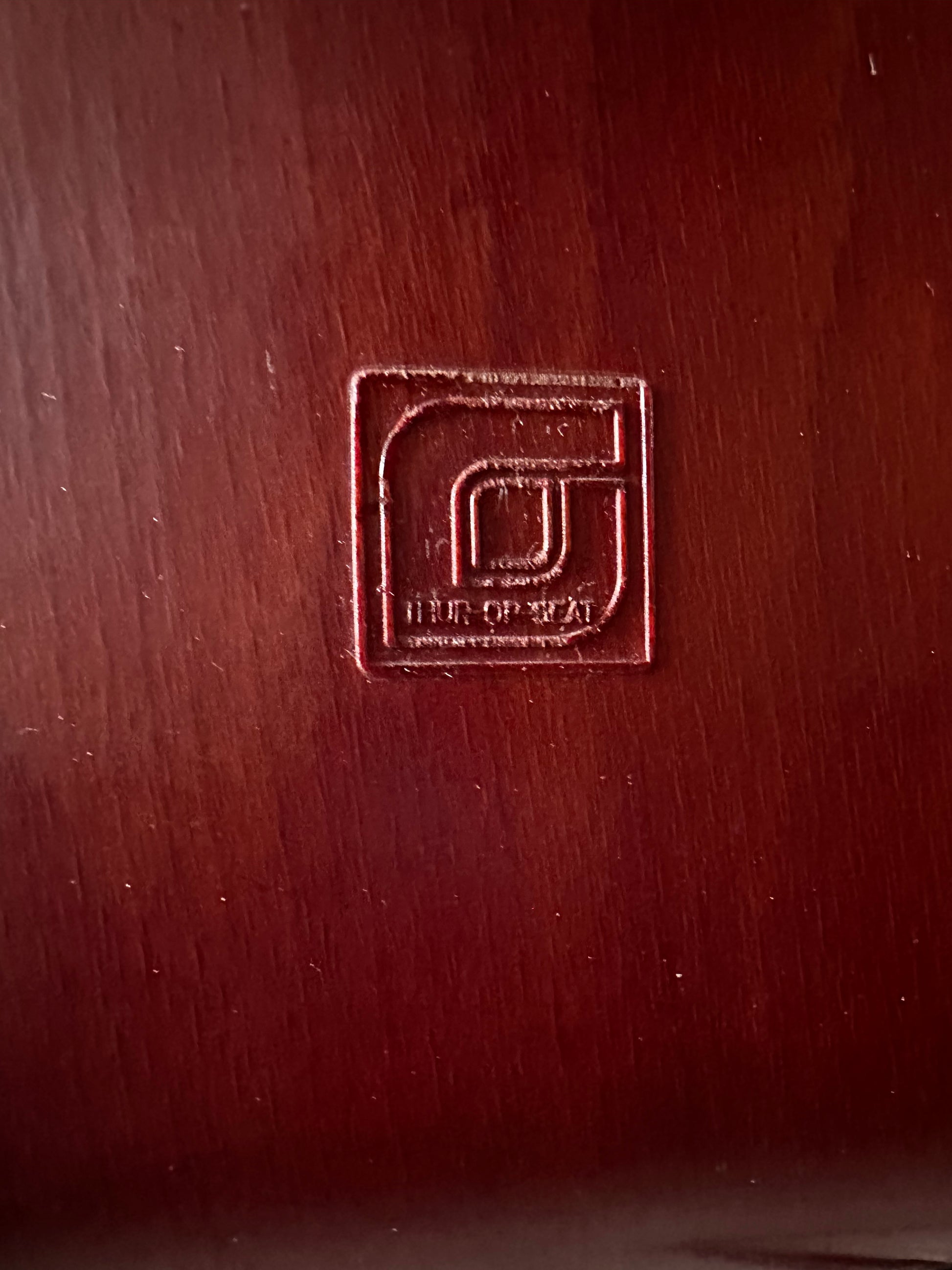 Een echte jaren 70 stoel. Deze Thur op Seat stoel is gemaakt in een samenwerking van Galvanitas & Pagholz. Gezien de leeftijd is de stoel nog in een mooie vintage staat met gebruikssporen passend bij de leeftijd. Stoel heeft het merkteken achter op de zitting.