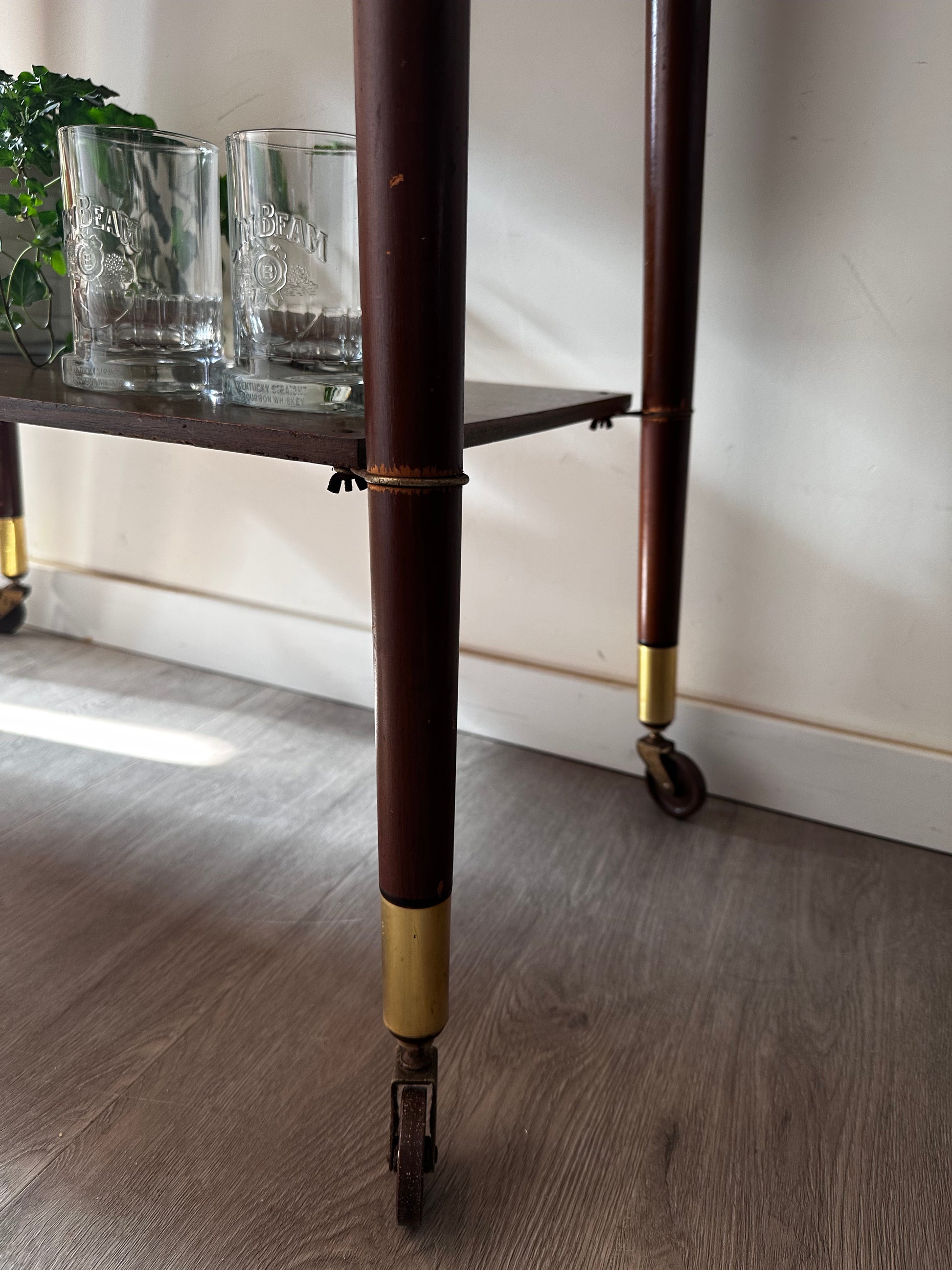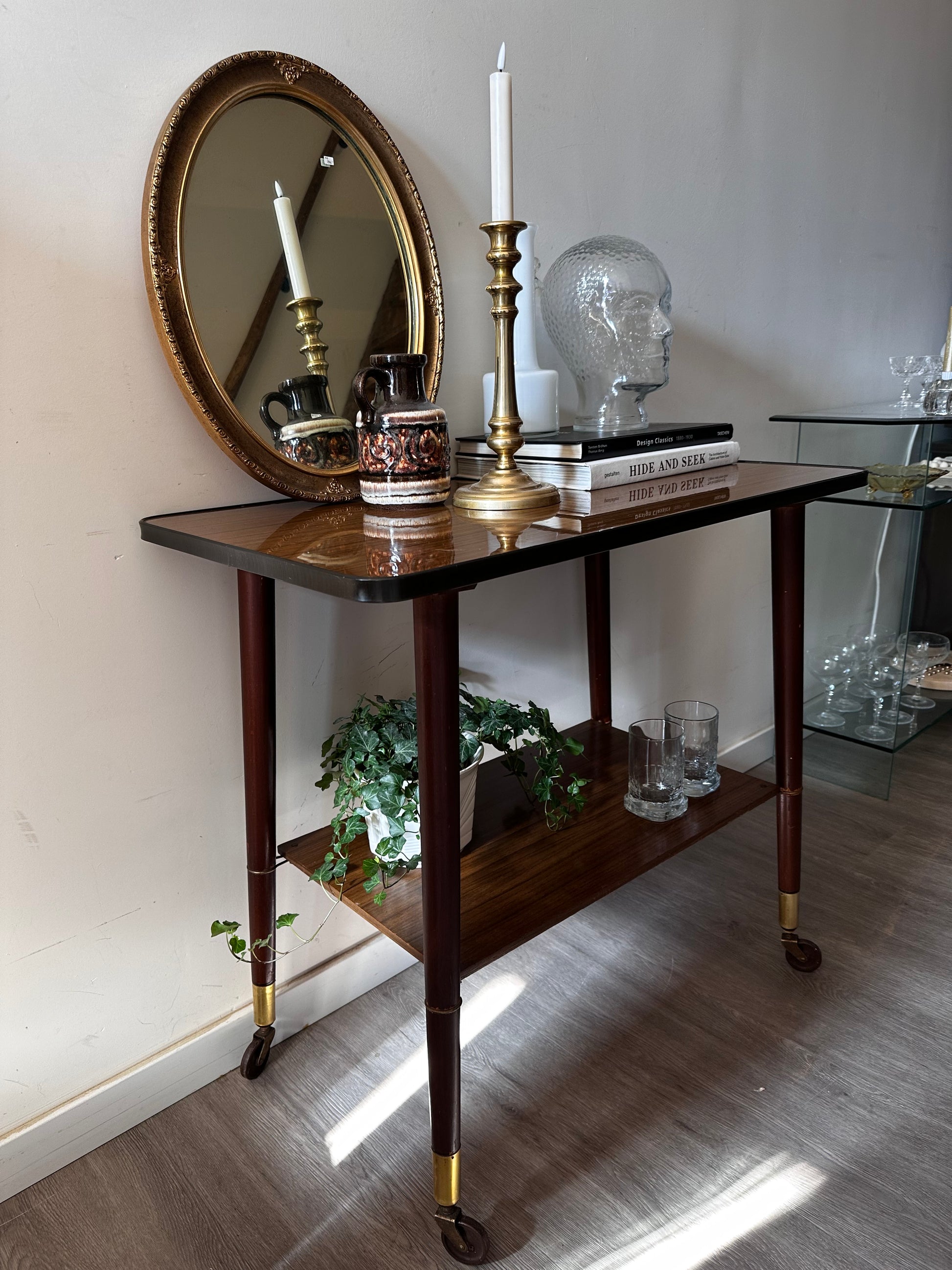 Prachtig vintage barcart/bijzettafeltje met handige wieltjes. Dit superleuke tafeltje is in een mooie vintage staat. Ook geweldig te gebruiken als platentafeltje.