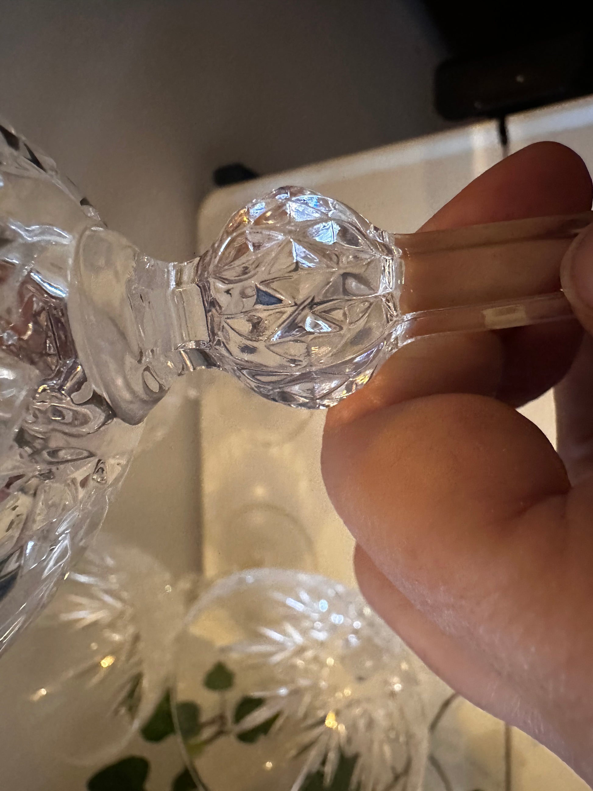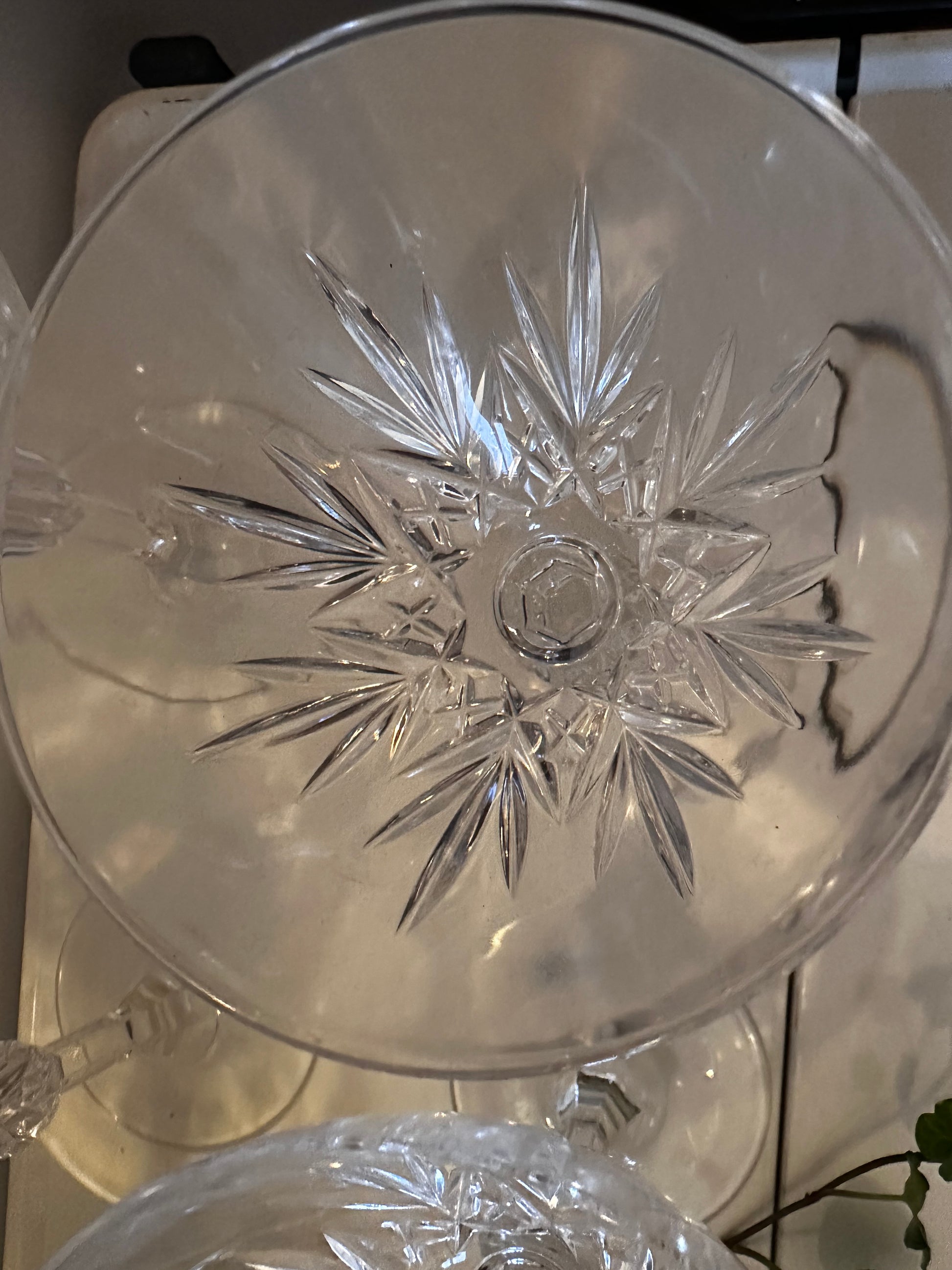 Een pracht set van 4 kristallen coupe champagne glazen. Glazen hebben een prachtig uitgeslepen design. Dateren jaren 70 en afkomstig uit Duitsland. In een top vintage staat.