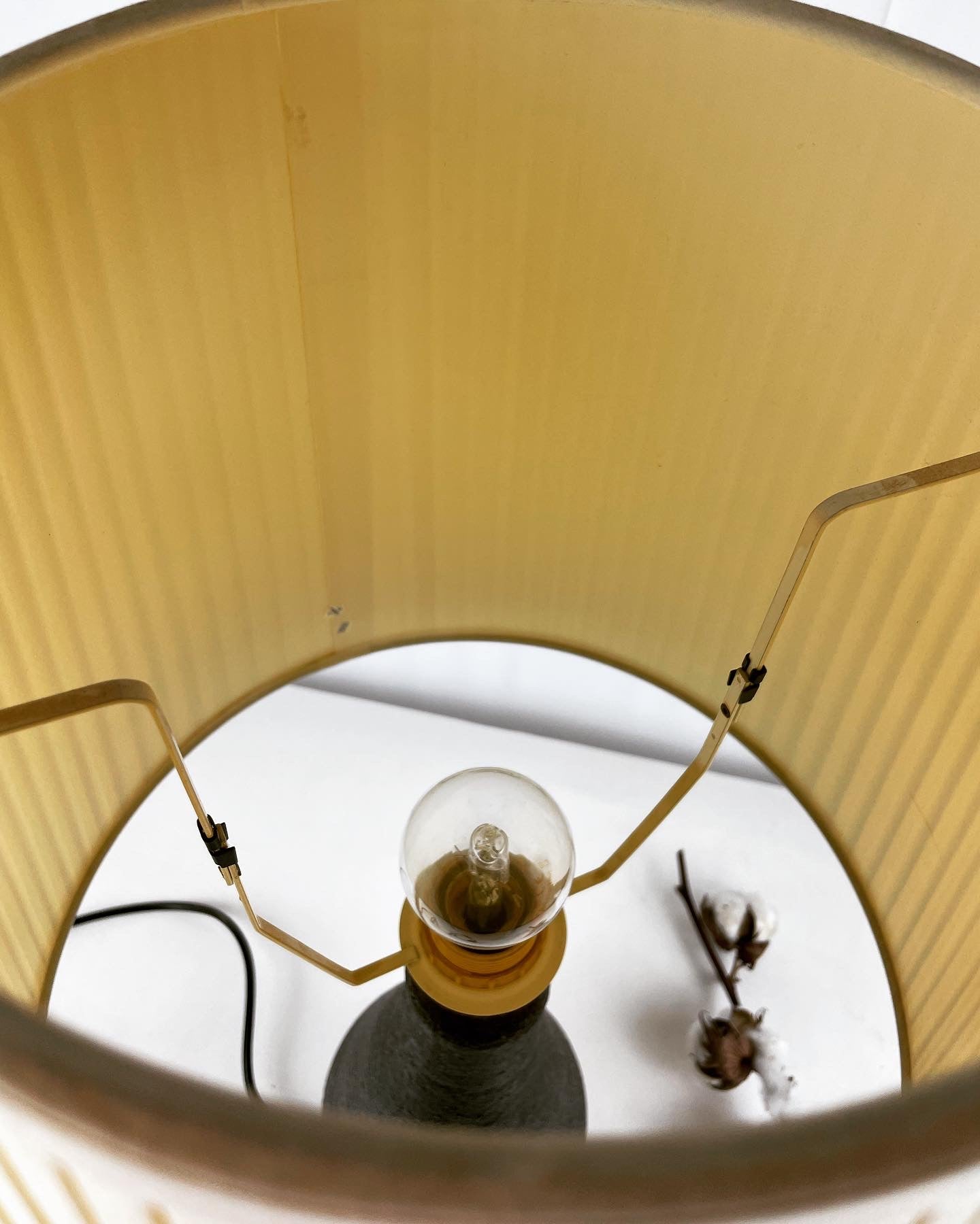 Geweldige vintage lamp. In een hele goede vintage staat. Lamp heeft een plissé roomkleurige kap en een stenen voet grijs. De lamp werkt uiteraard afkomstig uit Duitsland rond de jaren ‘70.