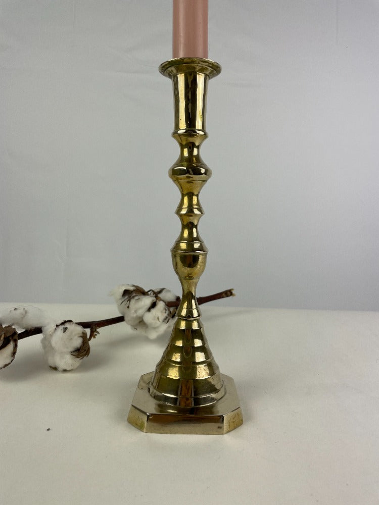 Een prachtige messing kandelaar in een hele mooie staat. Perfect voor een feestelijk gedekte tafel.