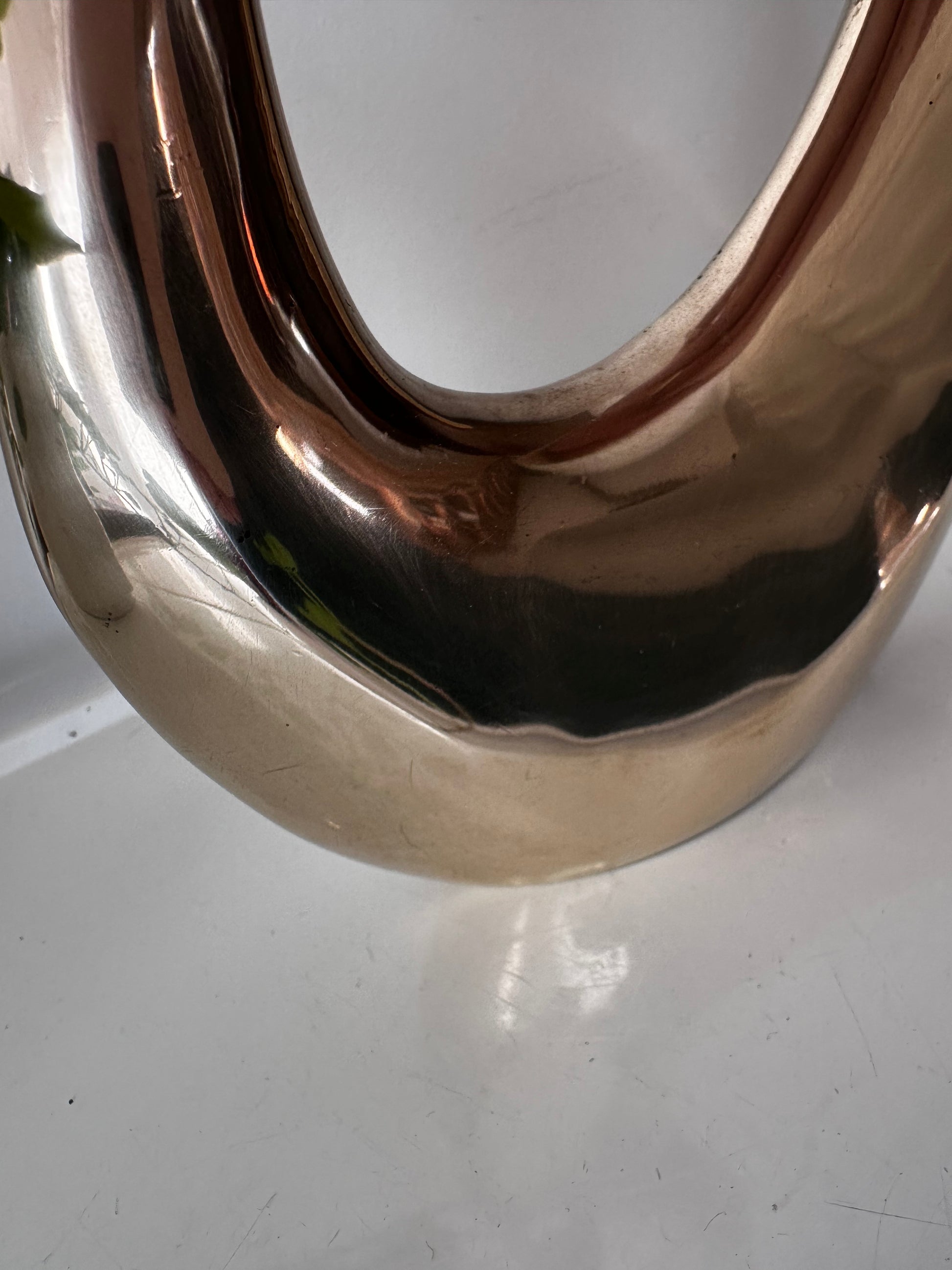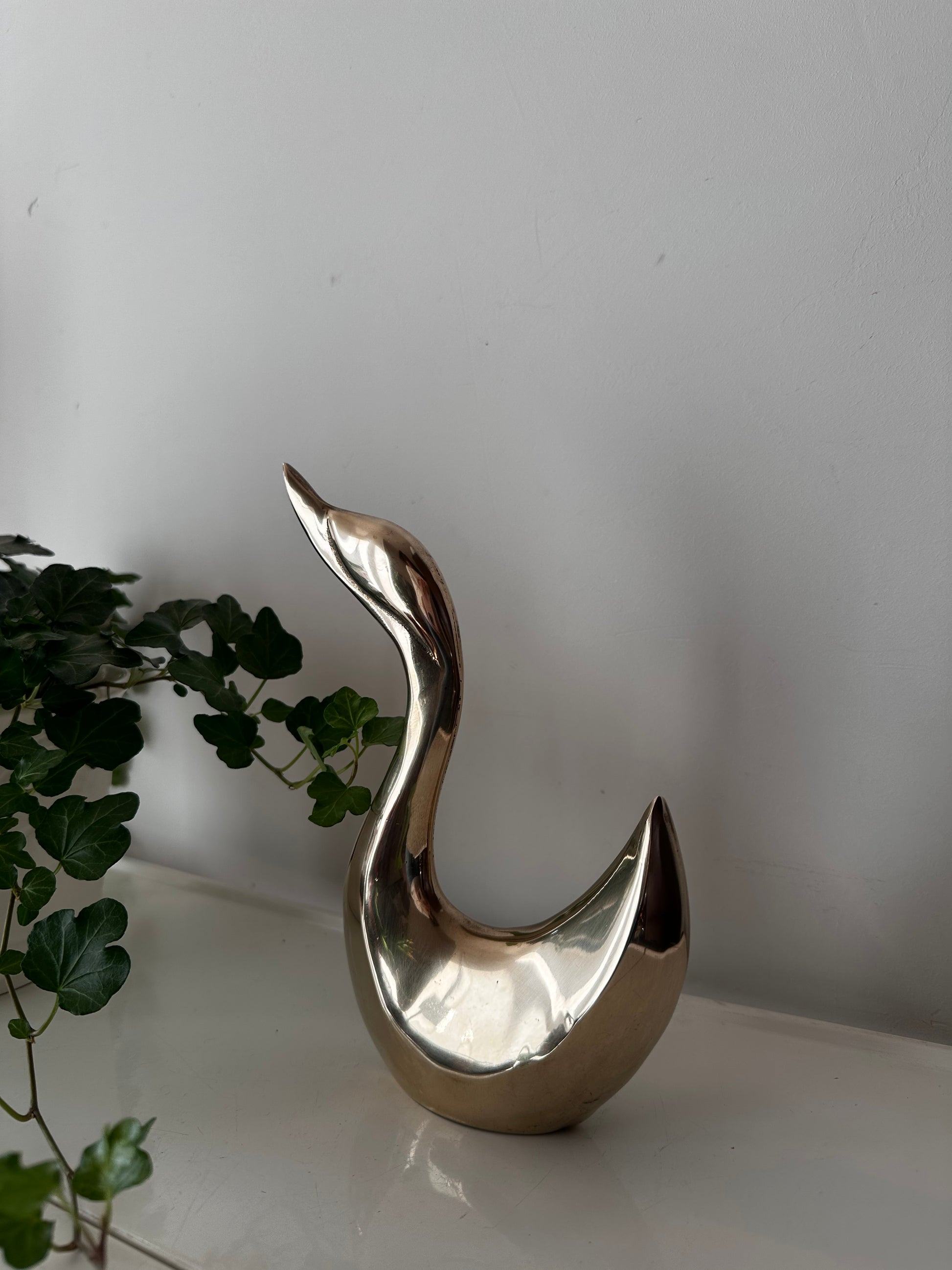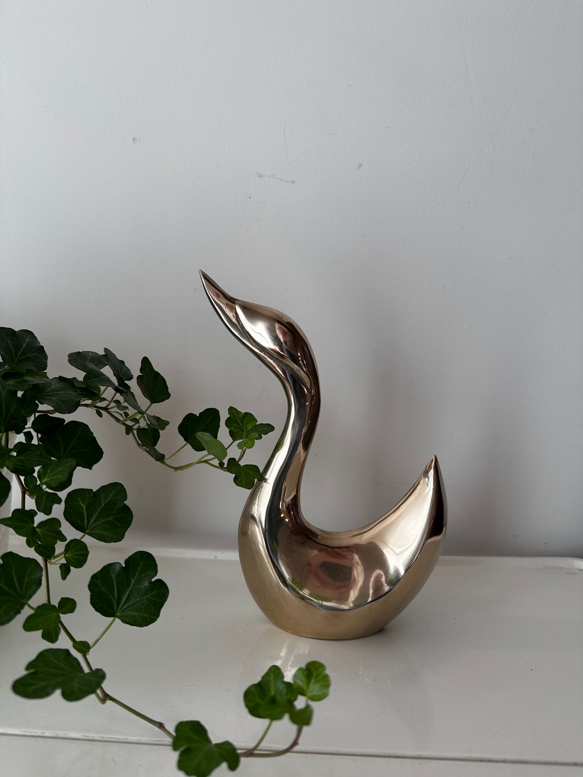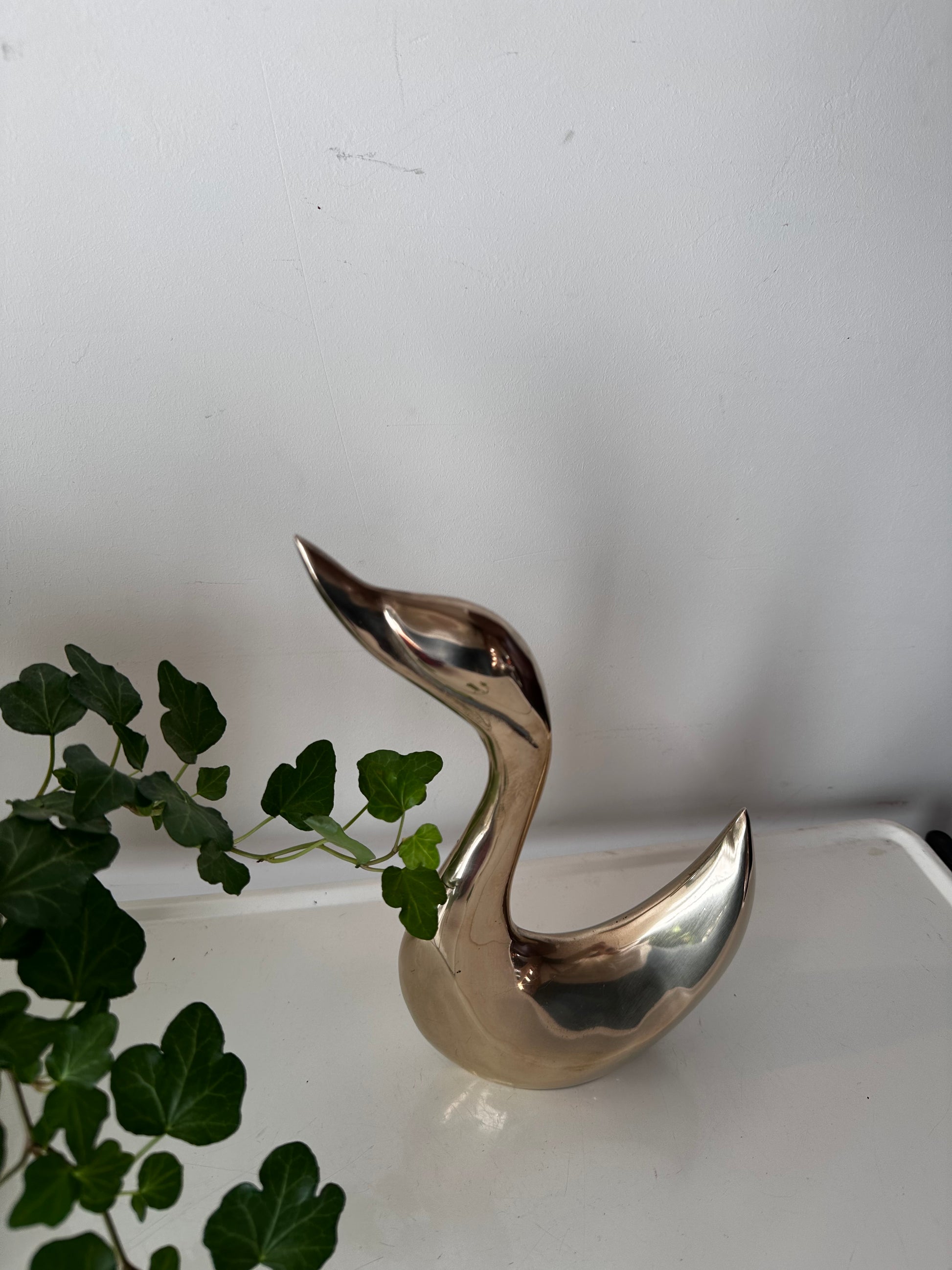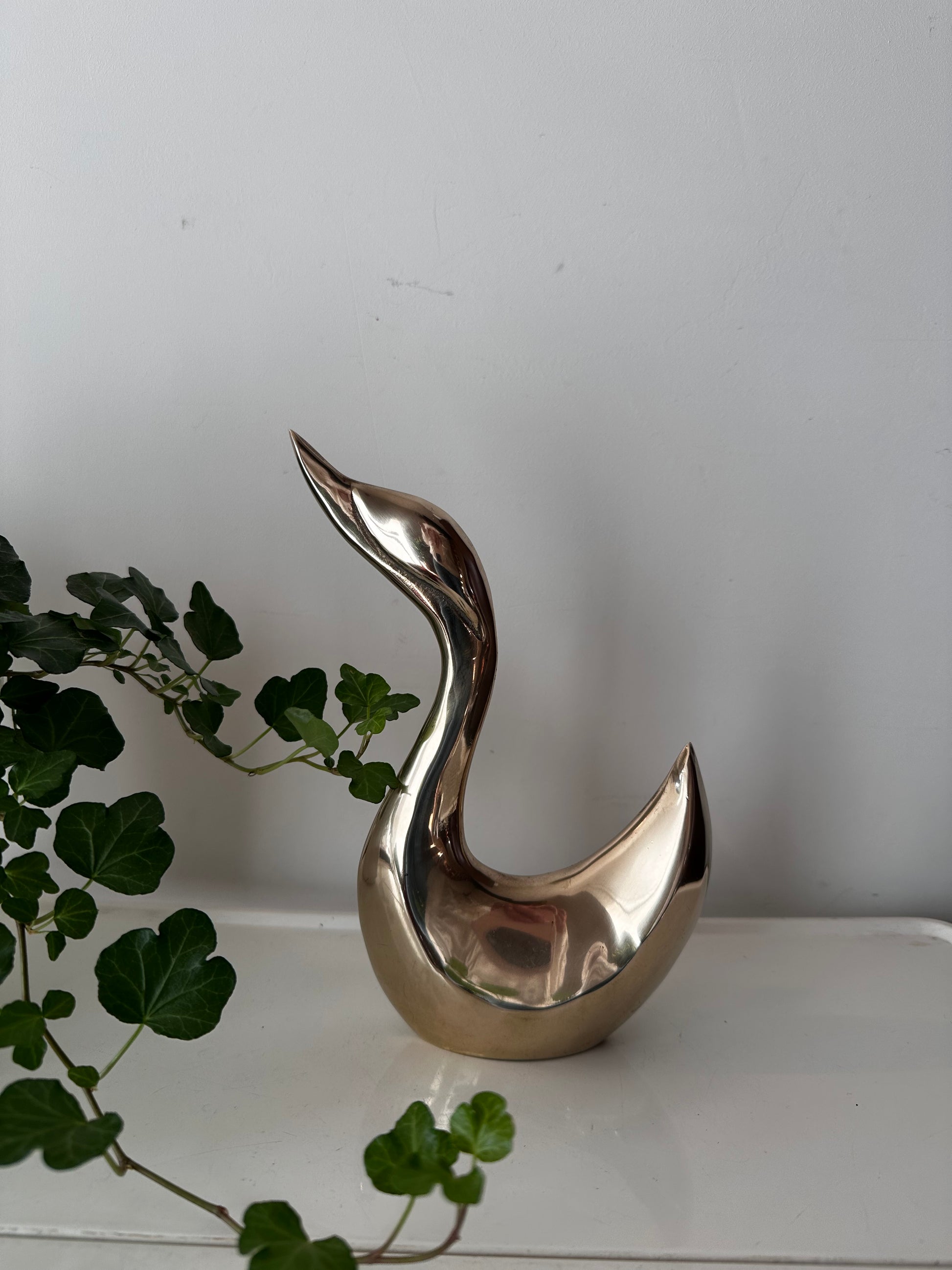 Een pracht van een messing zwaan. Ze kijkt deftig omhoog. In een hele mooie vintage staat.