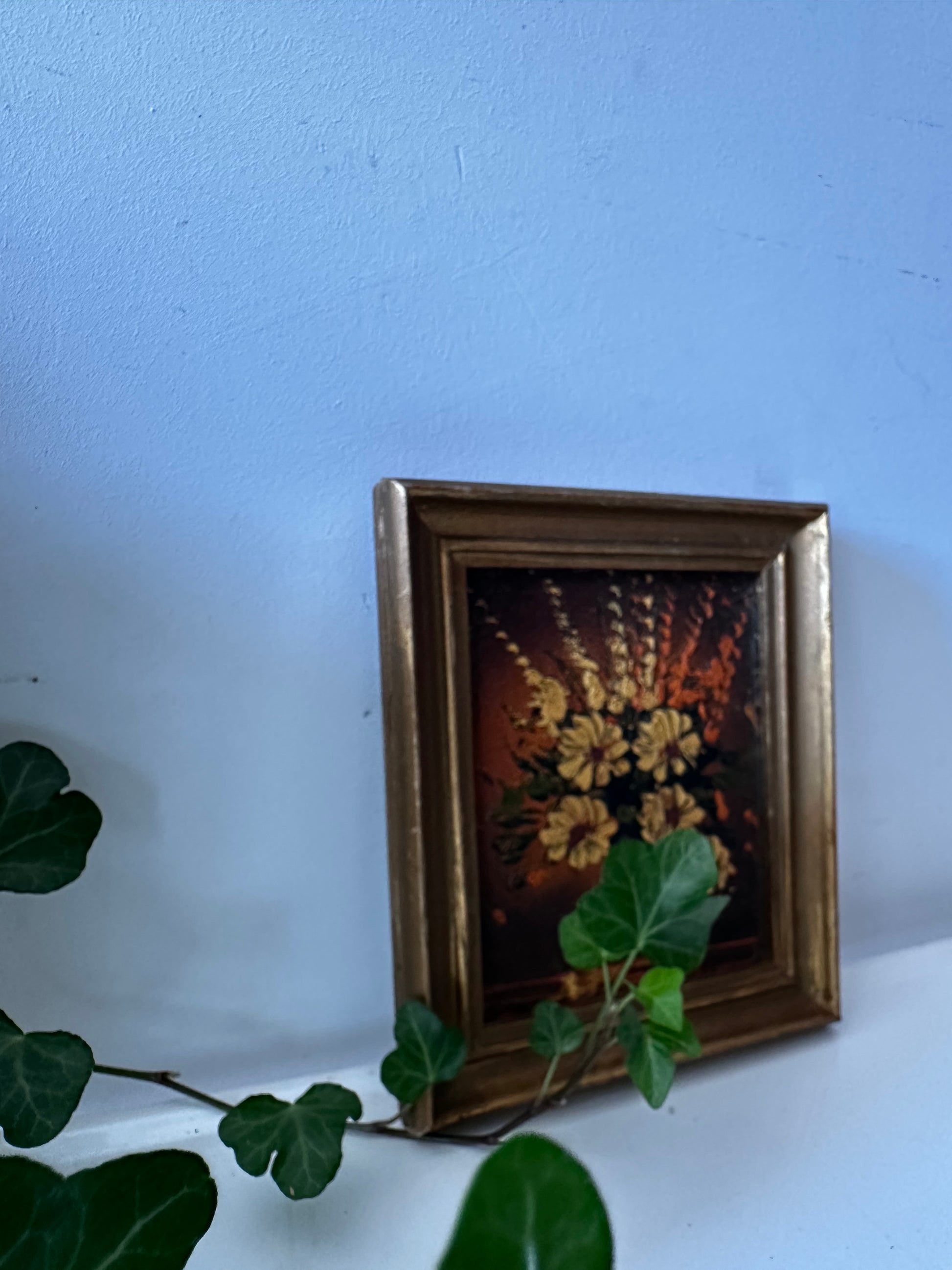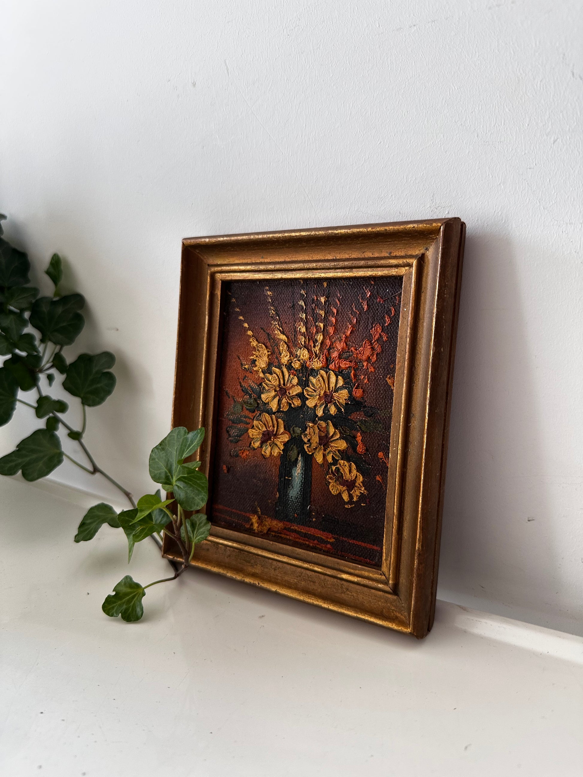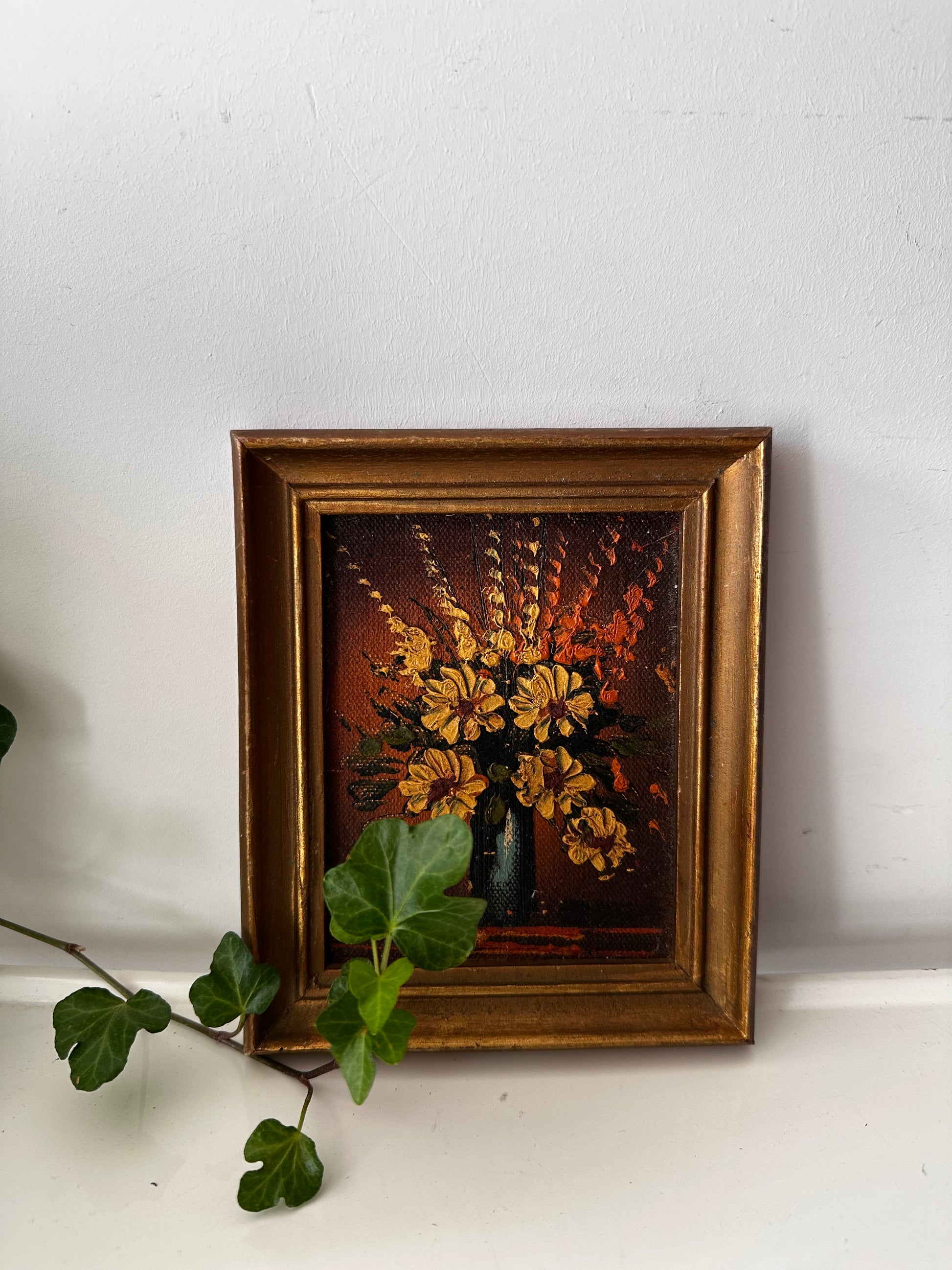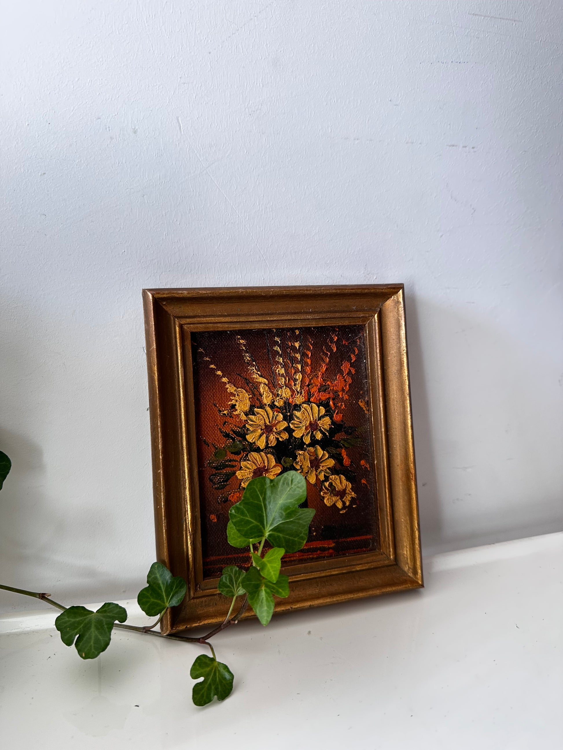 Vintage olieverf schilderijtje met bloemen