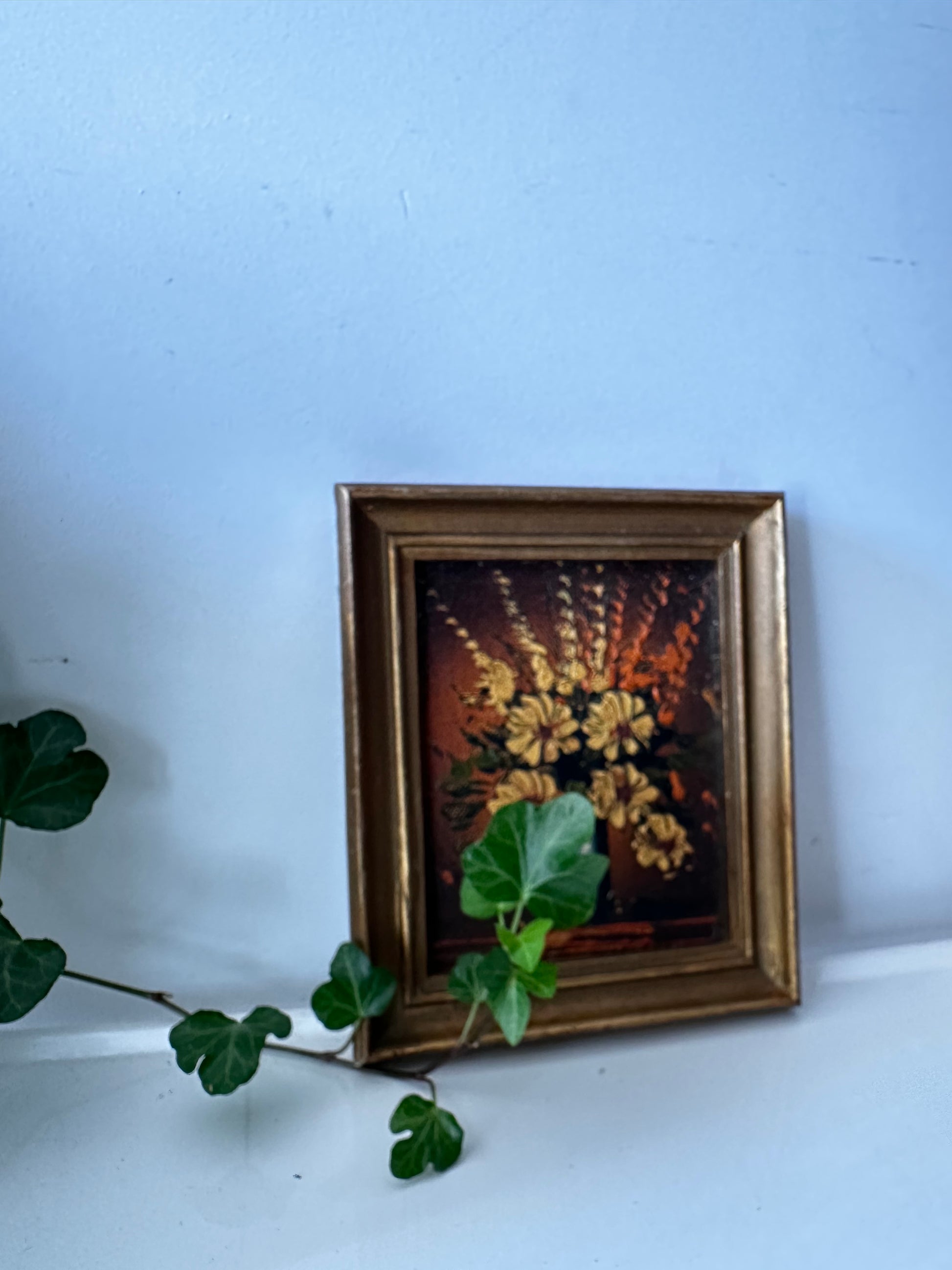 Vintage olieverf schilderijtje in goudkleurige lijst