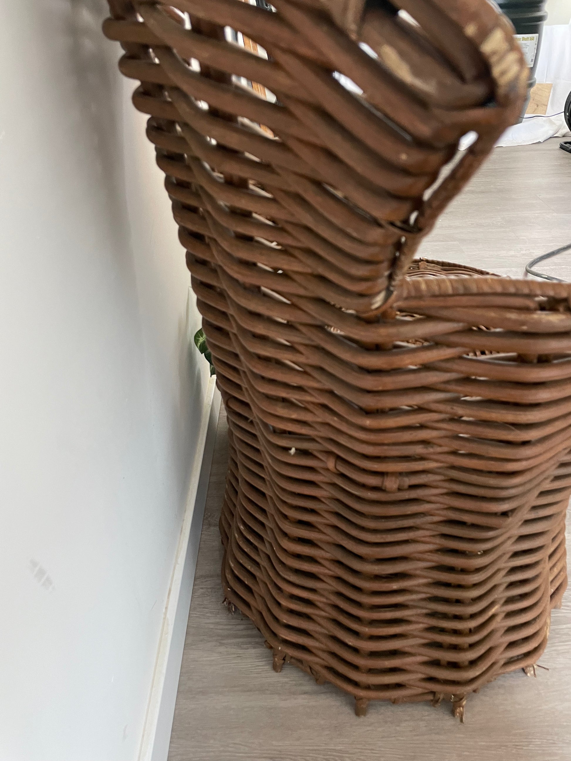 Niet helemaal gaaf maar wel ontzettend leuk deze vintage rotan stoel. Het is een model dat je niet vaak ziet en deze fauteuil is afkomstig uit Spanje. Dit geweldige model is hoog 83 cm diep 44 cm en breed 56 cm. De stoel is in een vintage staat maar oh zo charmant. Leuk te decoreren met een schapenvacht.