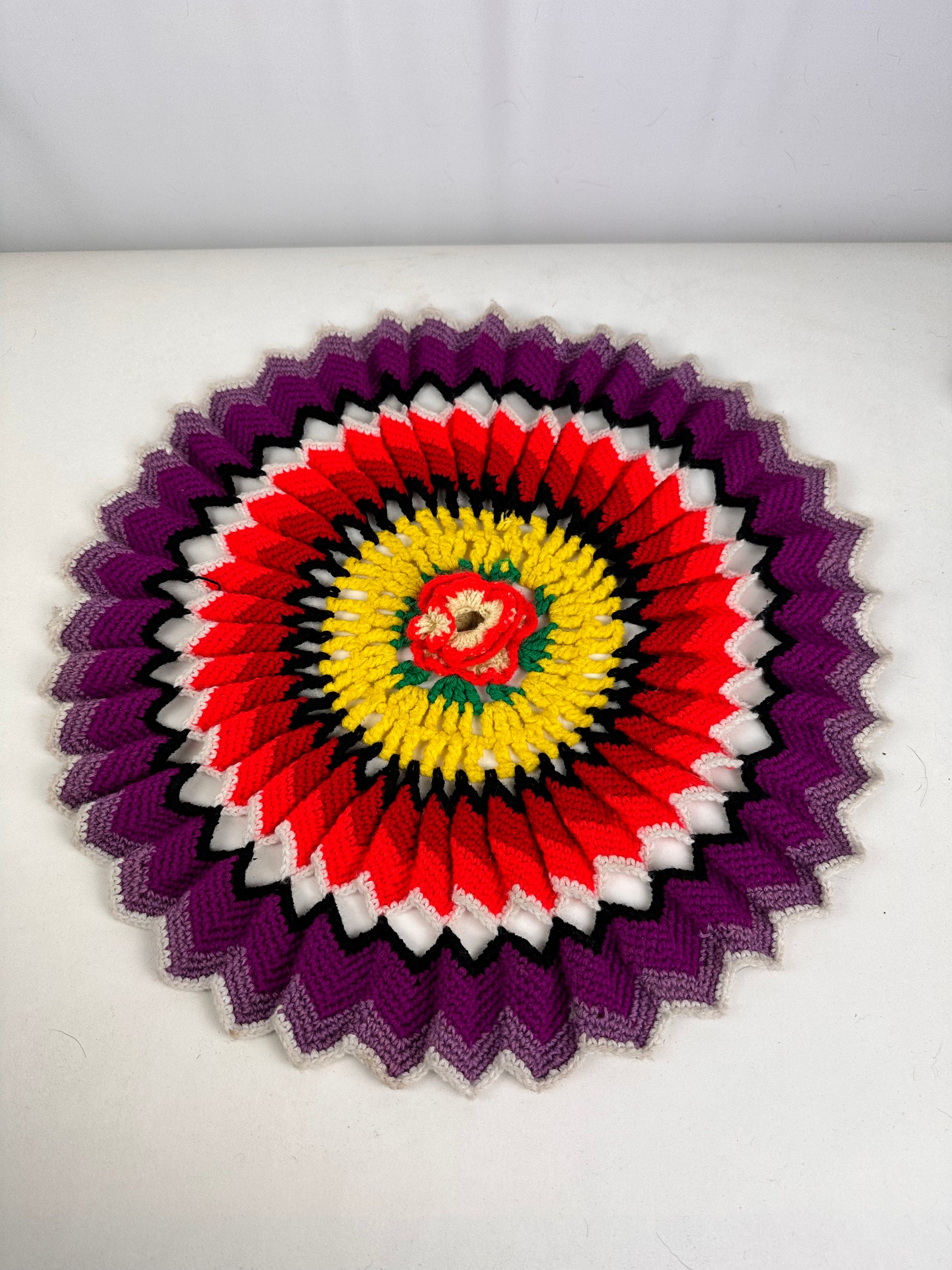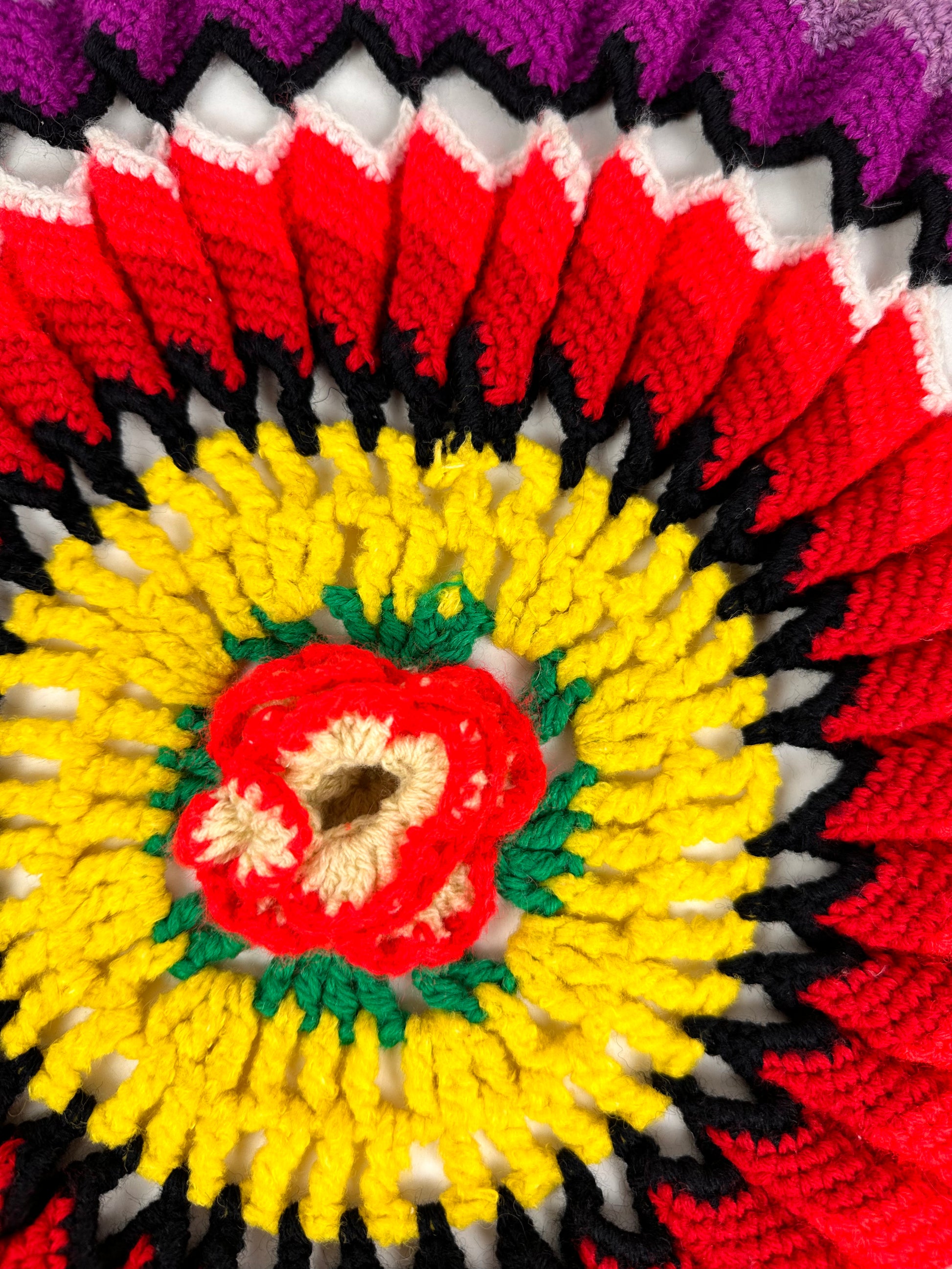 Dit is toch te gek. Zelf gemaakt tafelkleedje. Lekkere felle kleurtjes. Waar gaat deze op tafel liggen?