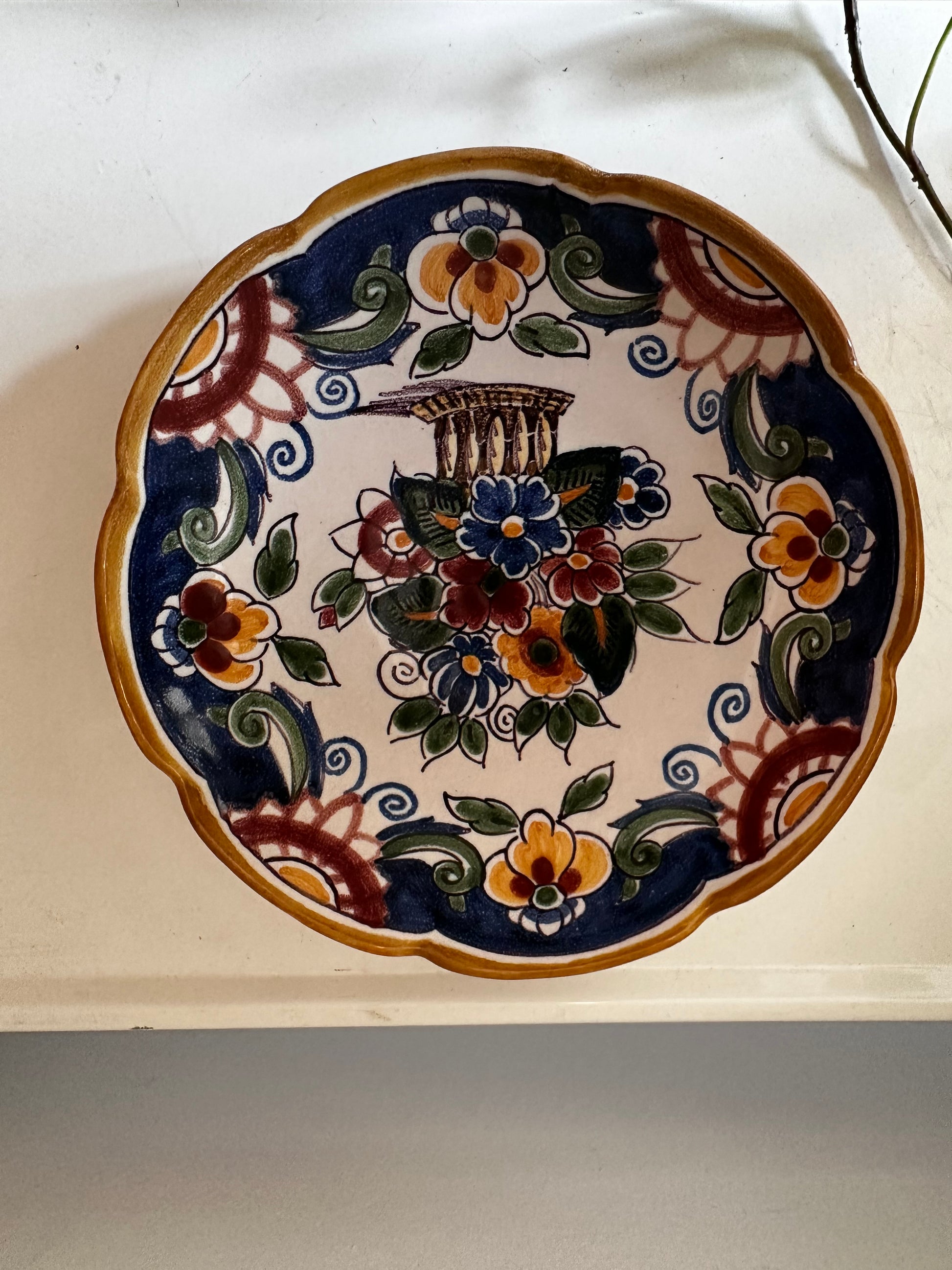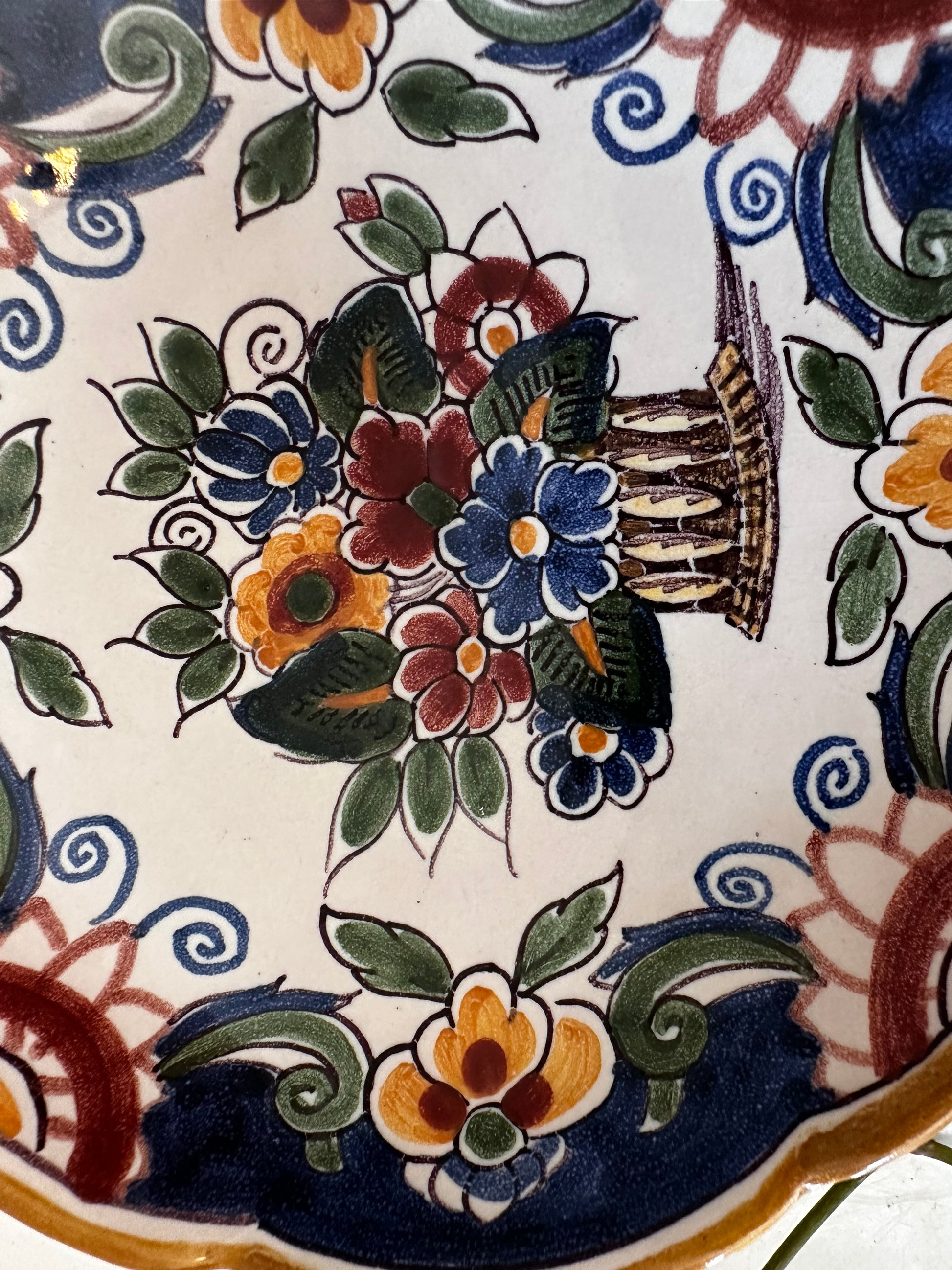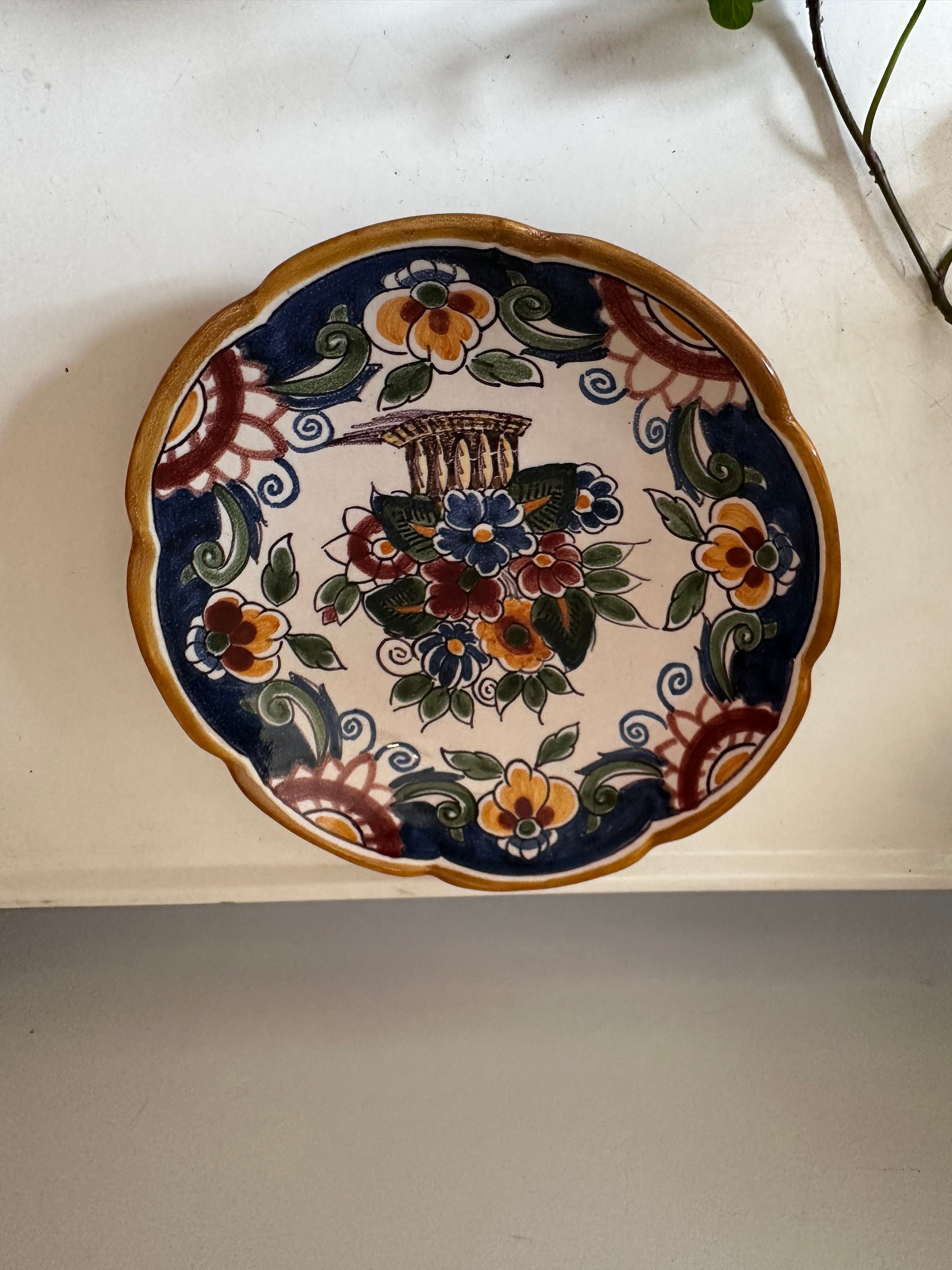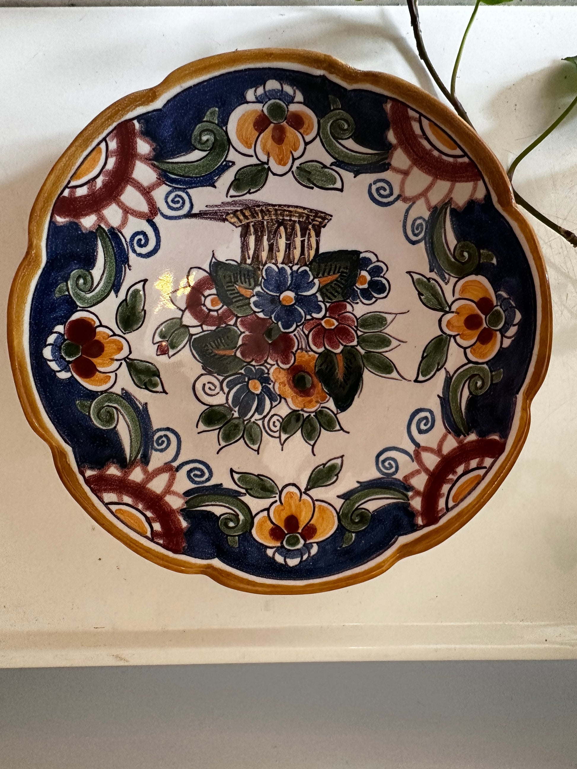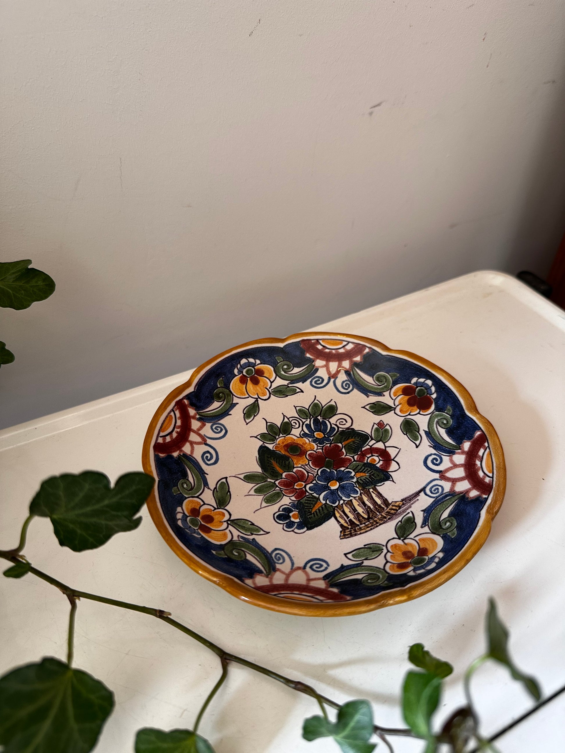 Prachtig Fries wandbord met rijk bloemmotief in diepe kleuren. Met de hand beschilderd in de traditie van het bekende Makkumer aardewerk. Superleuk voor aan de muur of als accent op een plankje!