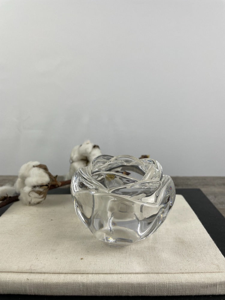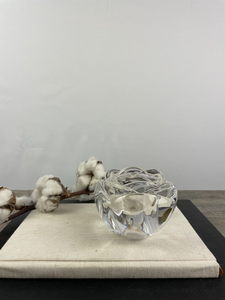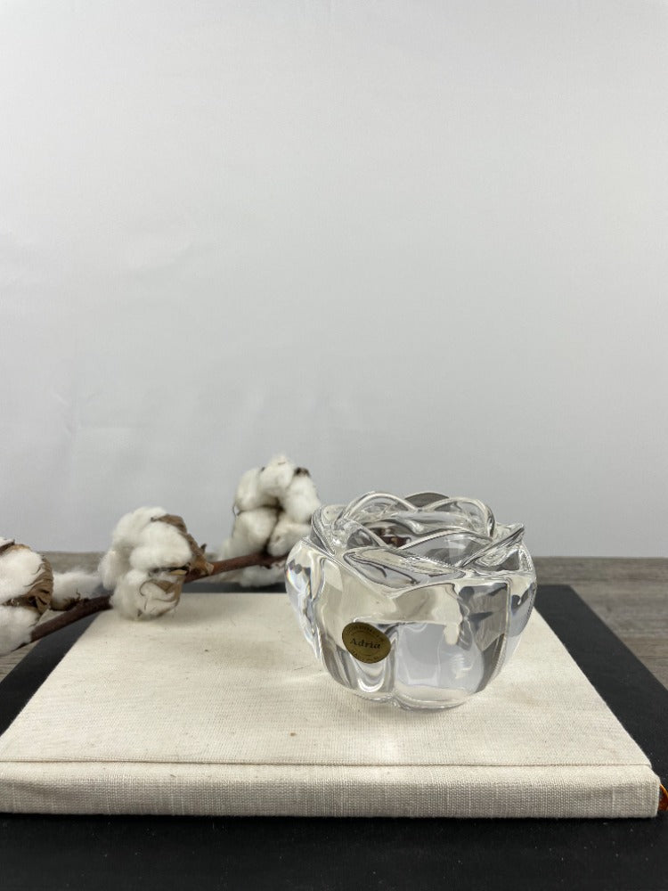 Roos motief waxinelichthouder. Deze houder is in een perfecte vintage staat en van Adria kristal met een 24% loodpercentage.