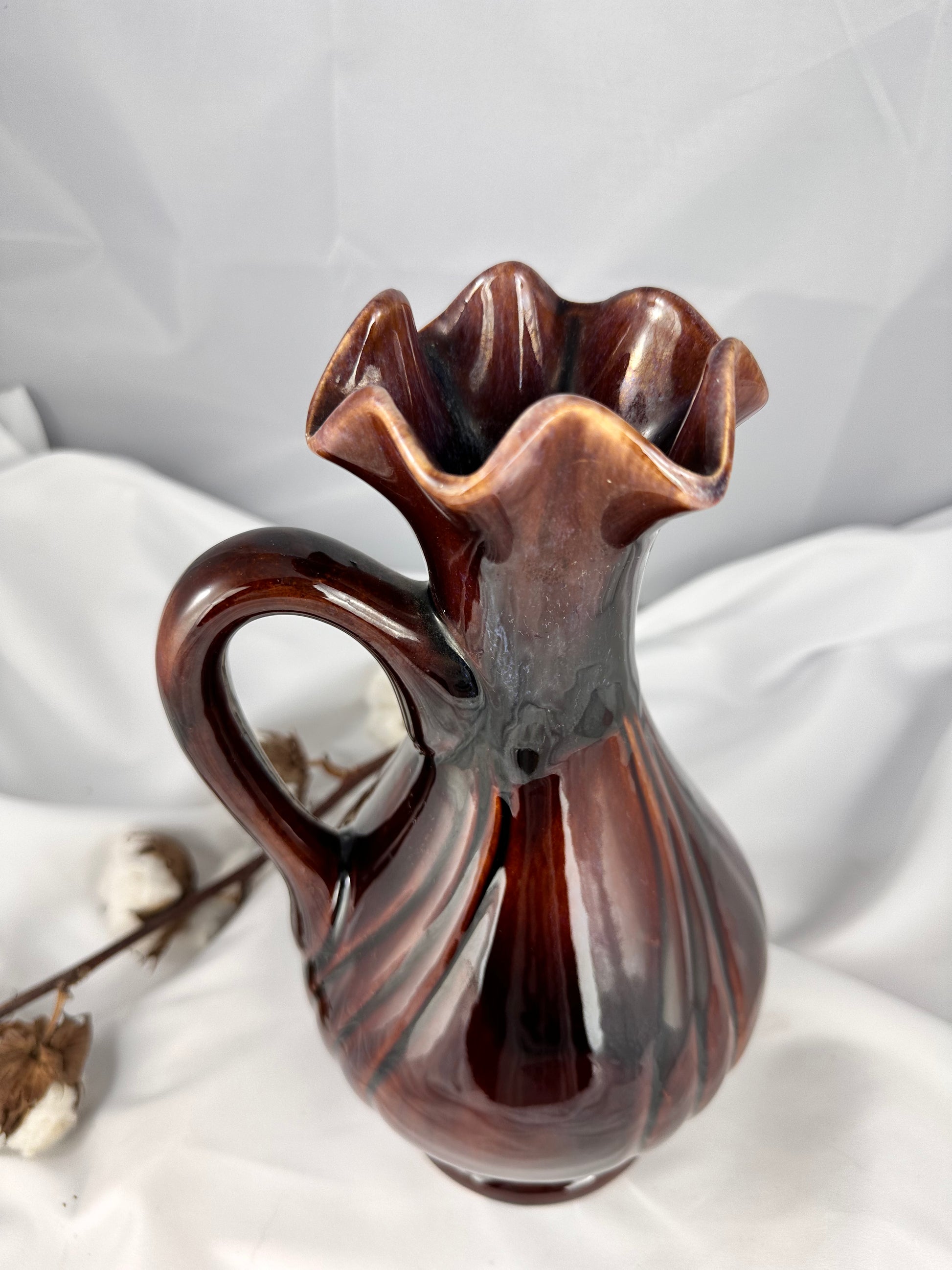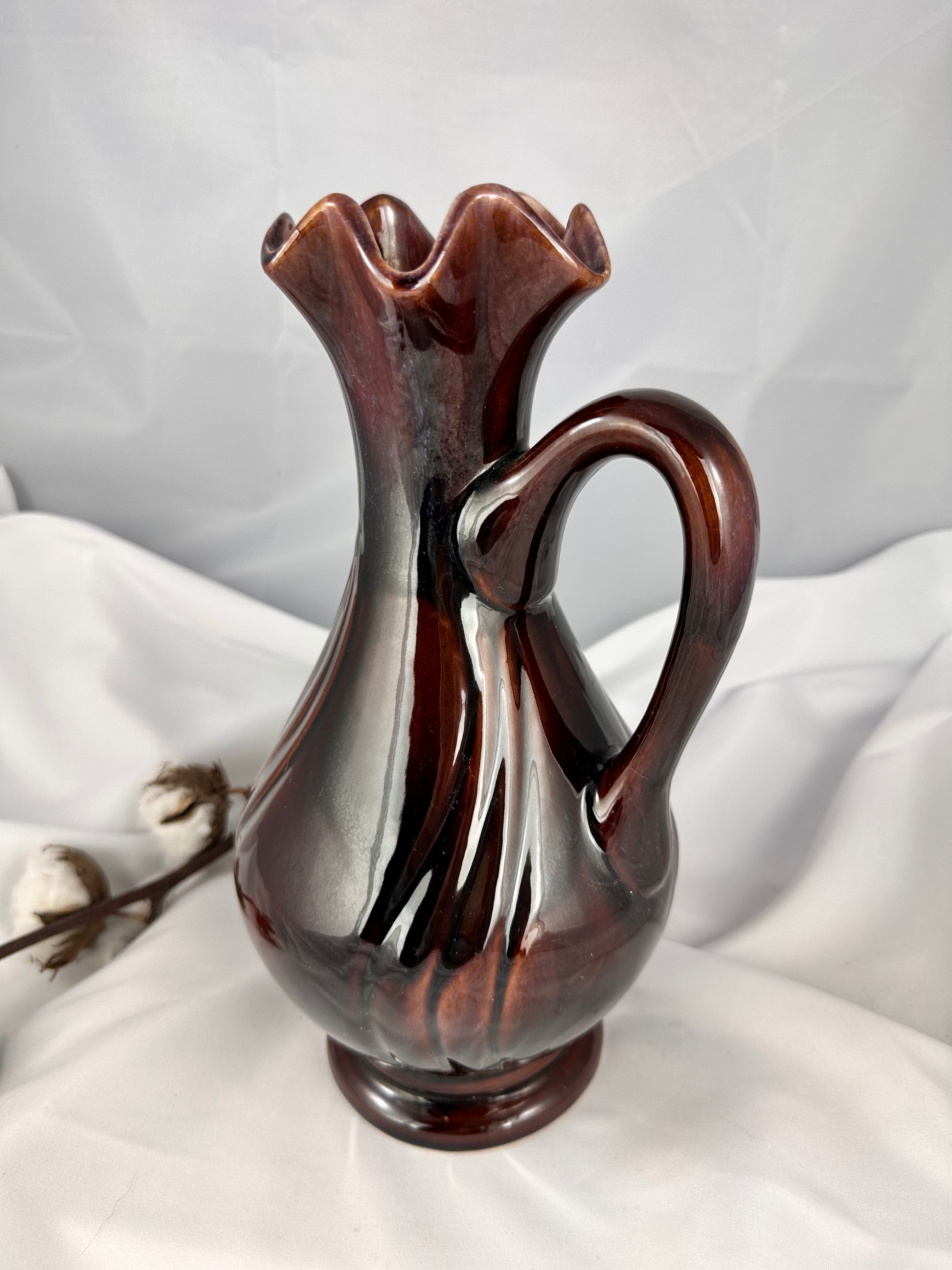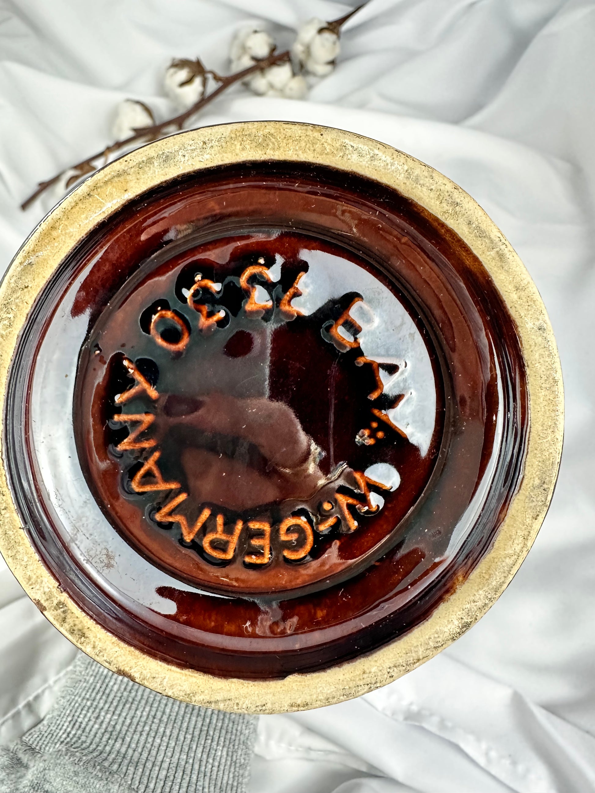 Een hele mooie vaas West Germany Bay. De vaas is Bruin geglazuurd en in een hele mooie vintage staat. Onderop zit een klein chipje maar dat is niet te zien als hij staat. De vaas heeft een handvat en een golvende bovenkant. Onderop de vaas zit het merk. De vaas komt uit de jaren 70 en is gemaakt van keramiek