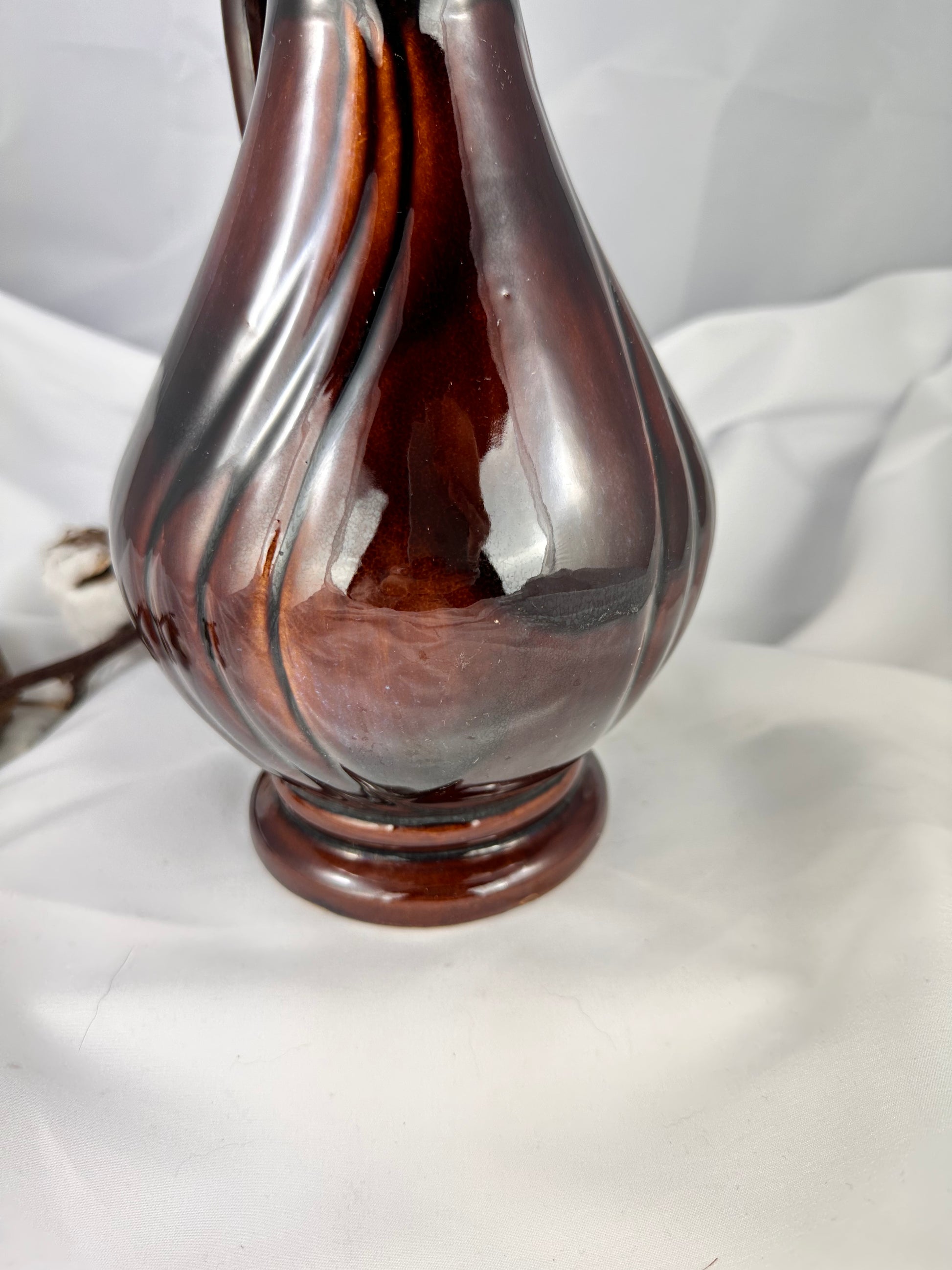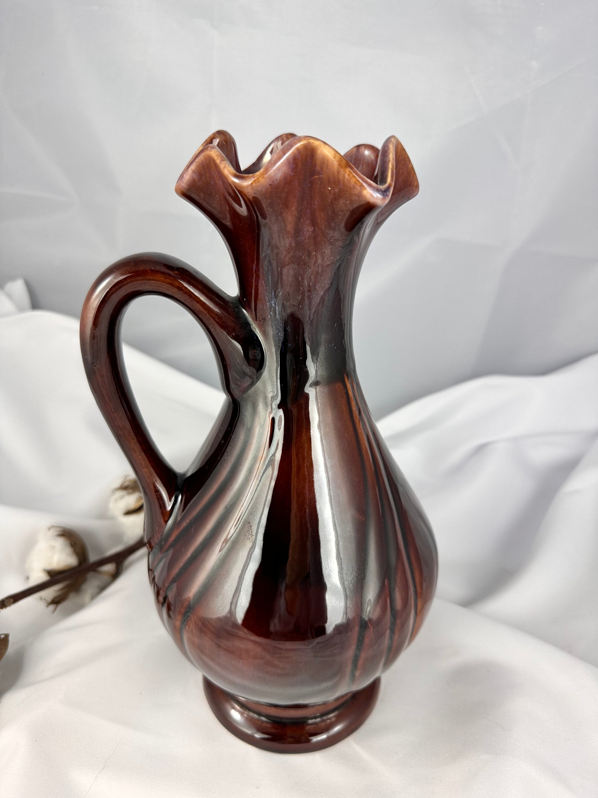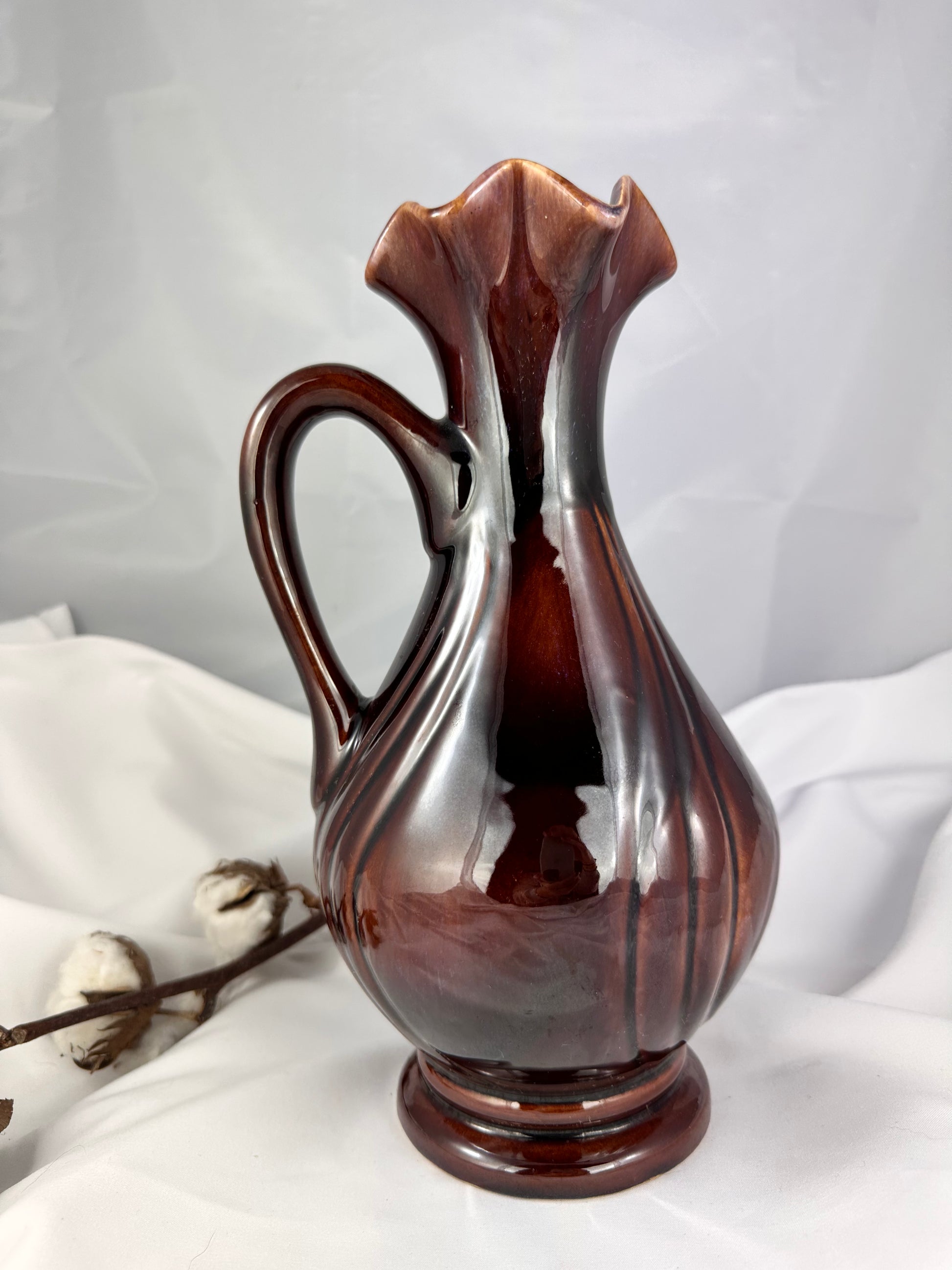 Een hele mooie vaas West Germany Bay. De vaas is Bruin geglazuurd en in een hele mooie vintage staat. Onderop zit een klein chipje maar dat is niet te zien als hij staat. De vaas heeft een handvat en een golvende bovenkant. Onderop de vaas zit het merk. De vaas komt uit de jaren 70 en is gemaakt van keramiek
