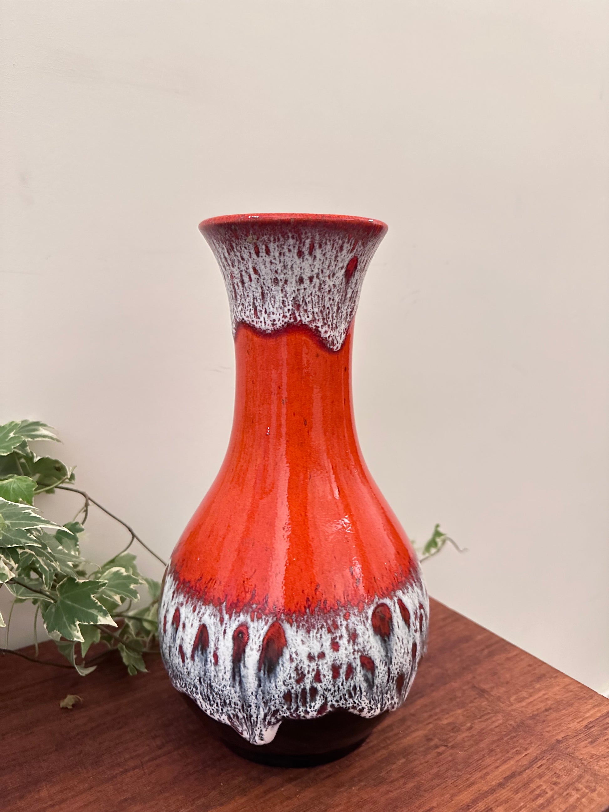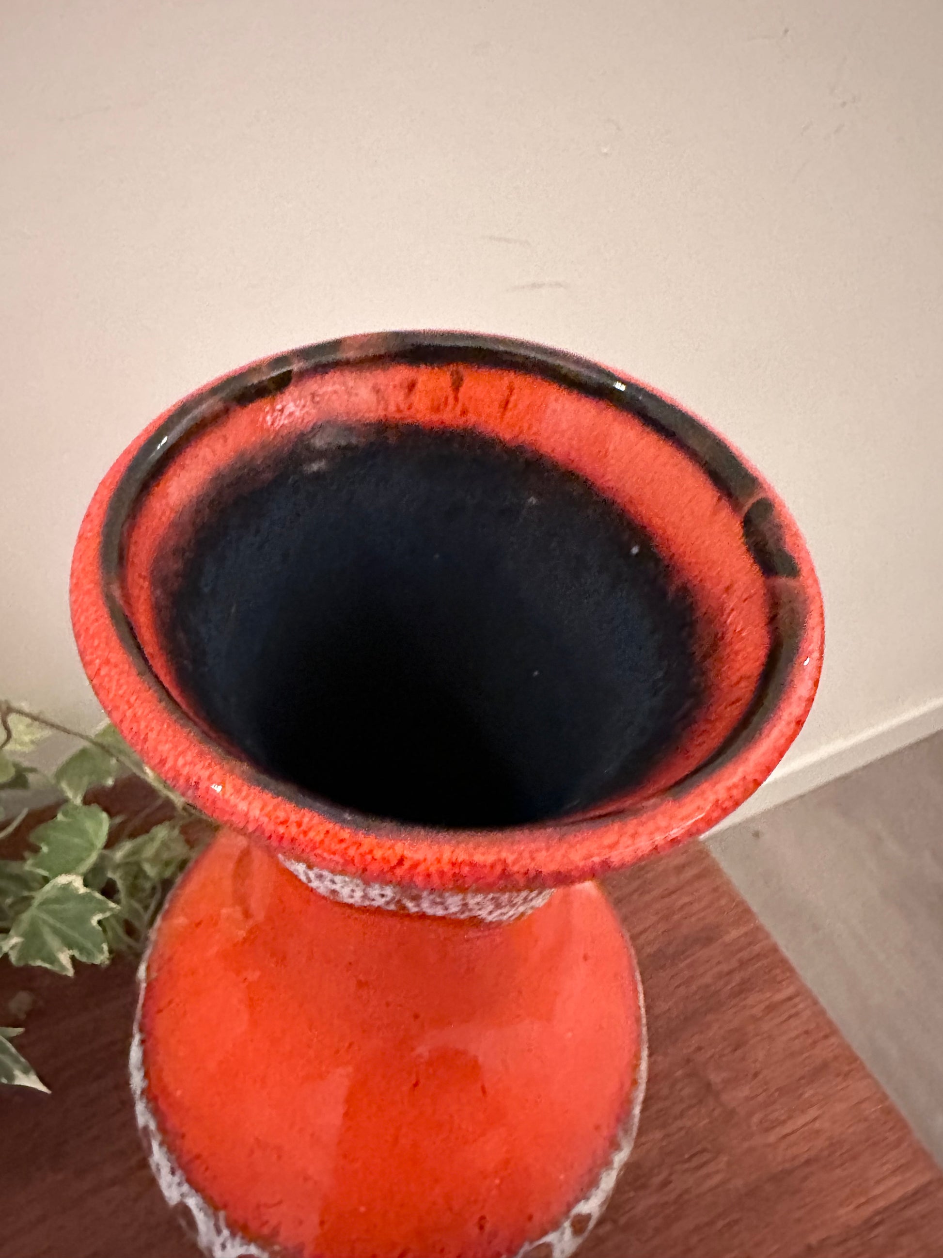 Weer zo een gave Retro West Germany vaas. Vaas is in perfecte staat. Oranje wit bruine kleuren. Vaas is gemerkt onder.