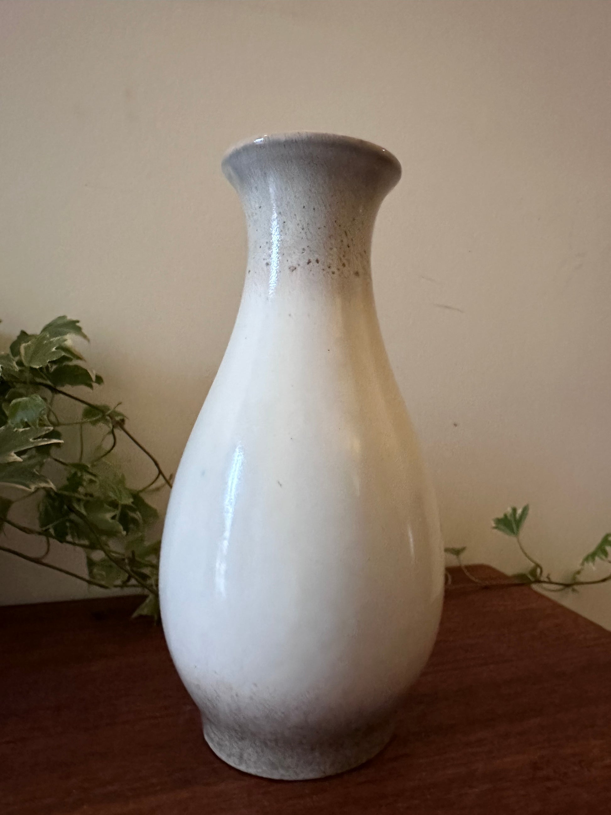 West Germany vazen blijven toch een klasse apart. Dit is een witte vaas die naar een grijze tint overloopt. De vaas is in een geweldige vintage staat. De vaas is gemerkt onder 227-22.