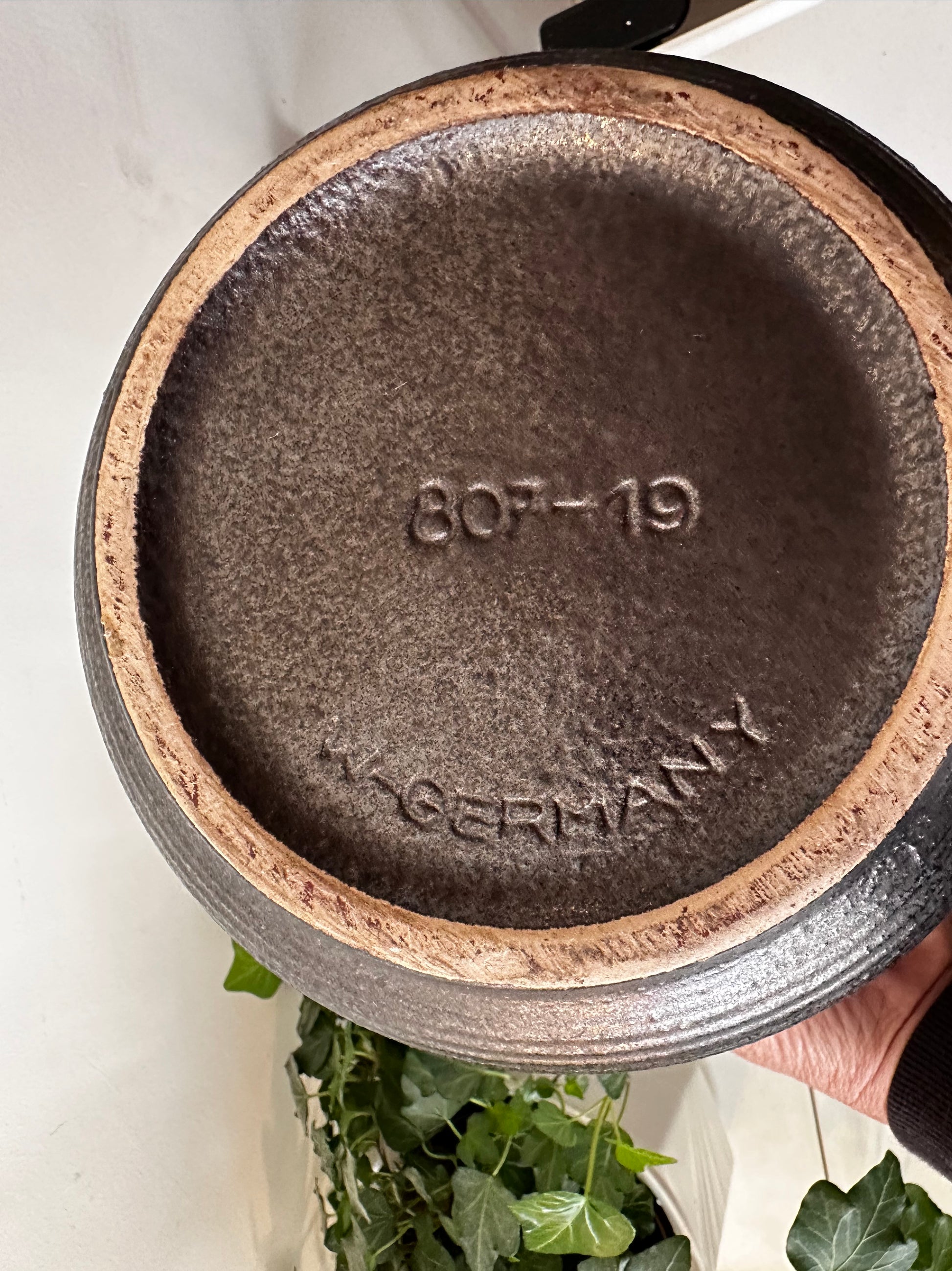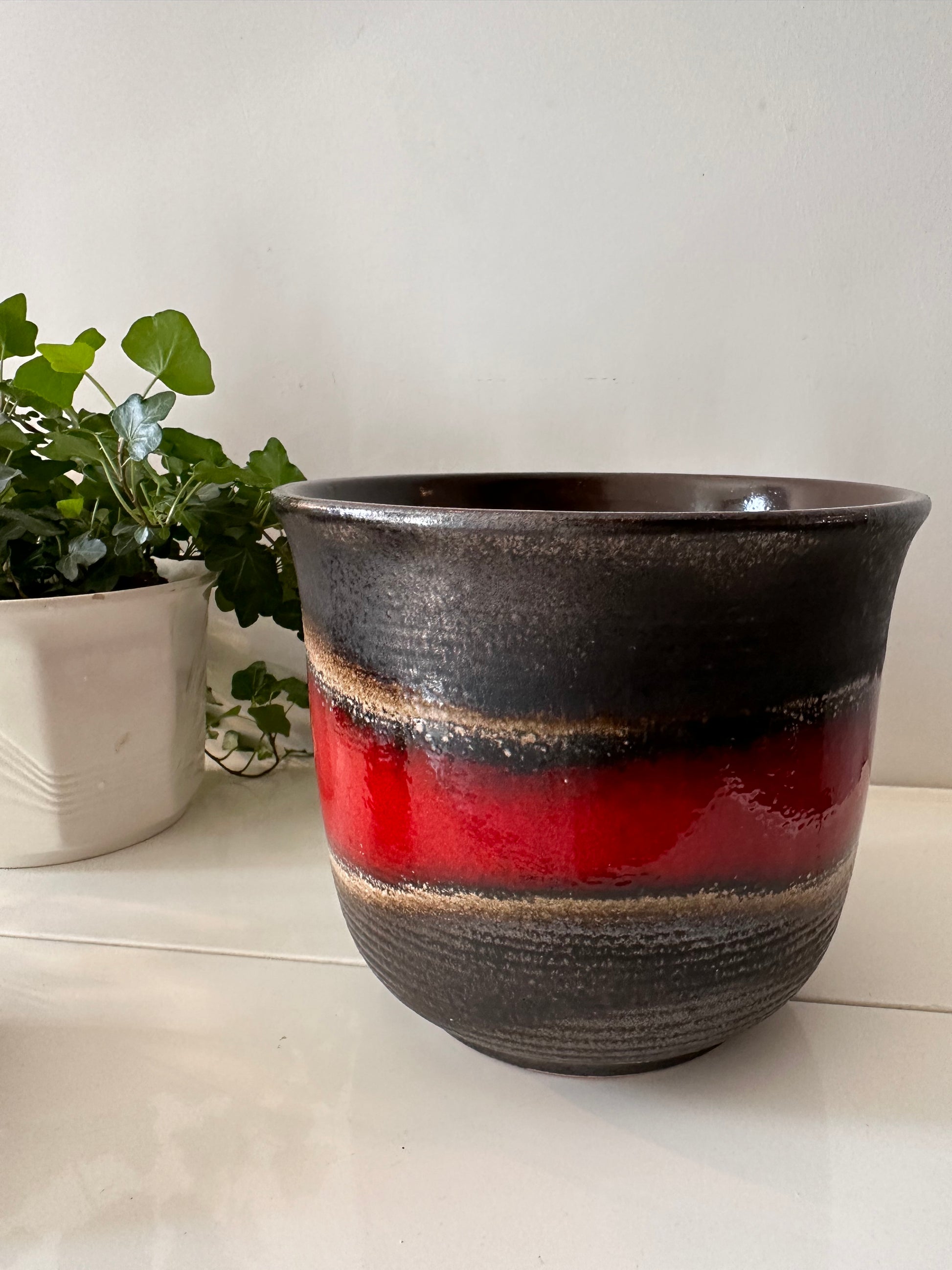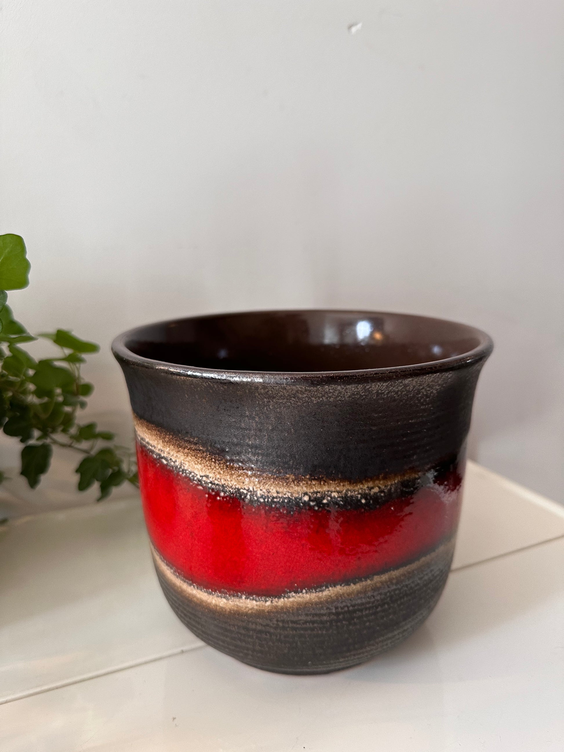 Lekker retro jaren 79 deze geweldige West Germany keramieken bloempot. Hij is nog super mooi en gemerkt onder . Mooie bruin tinten met een rode rand .