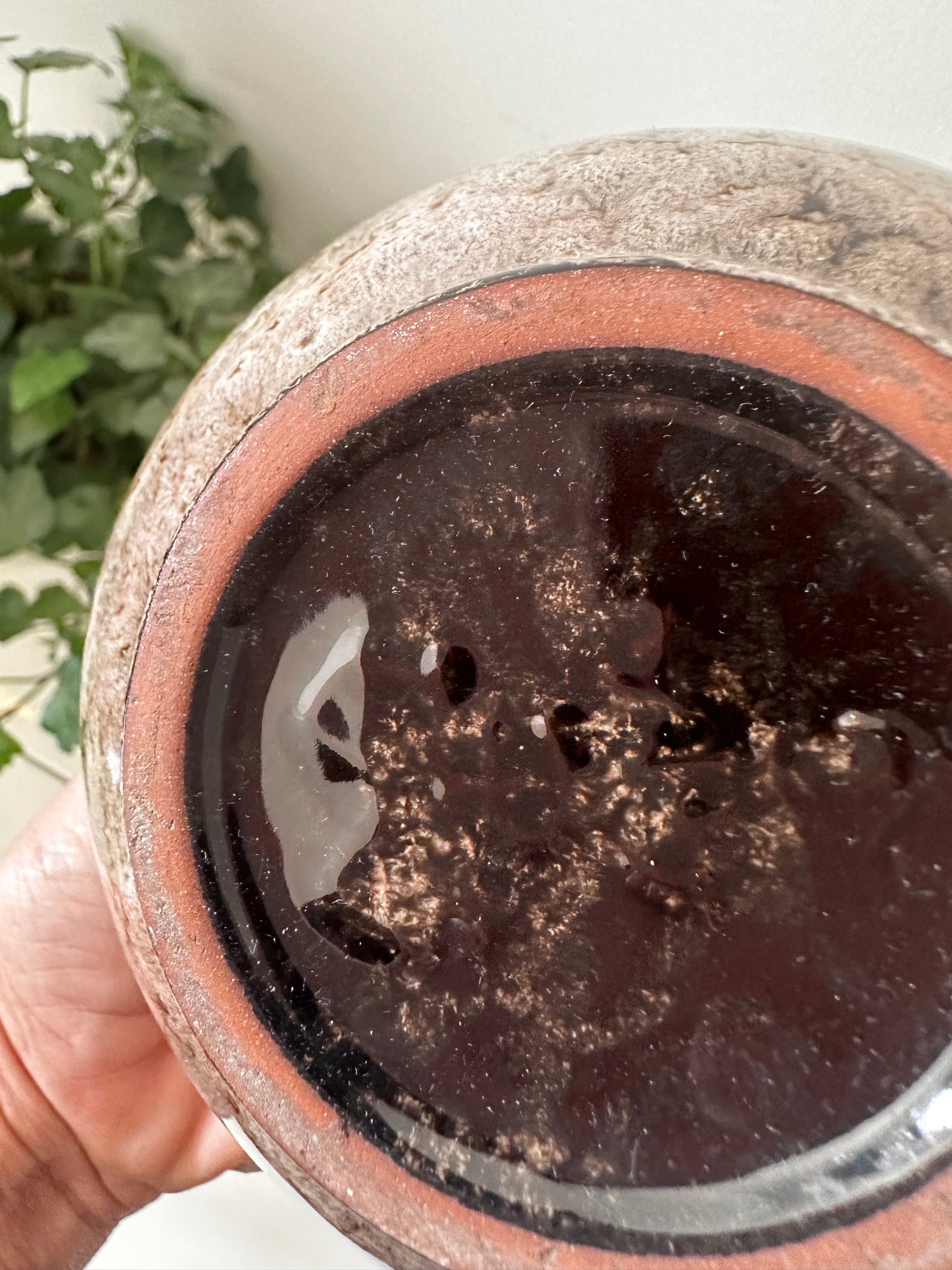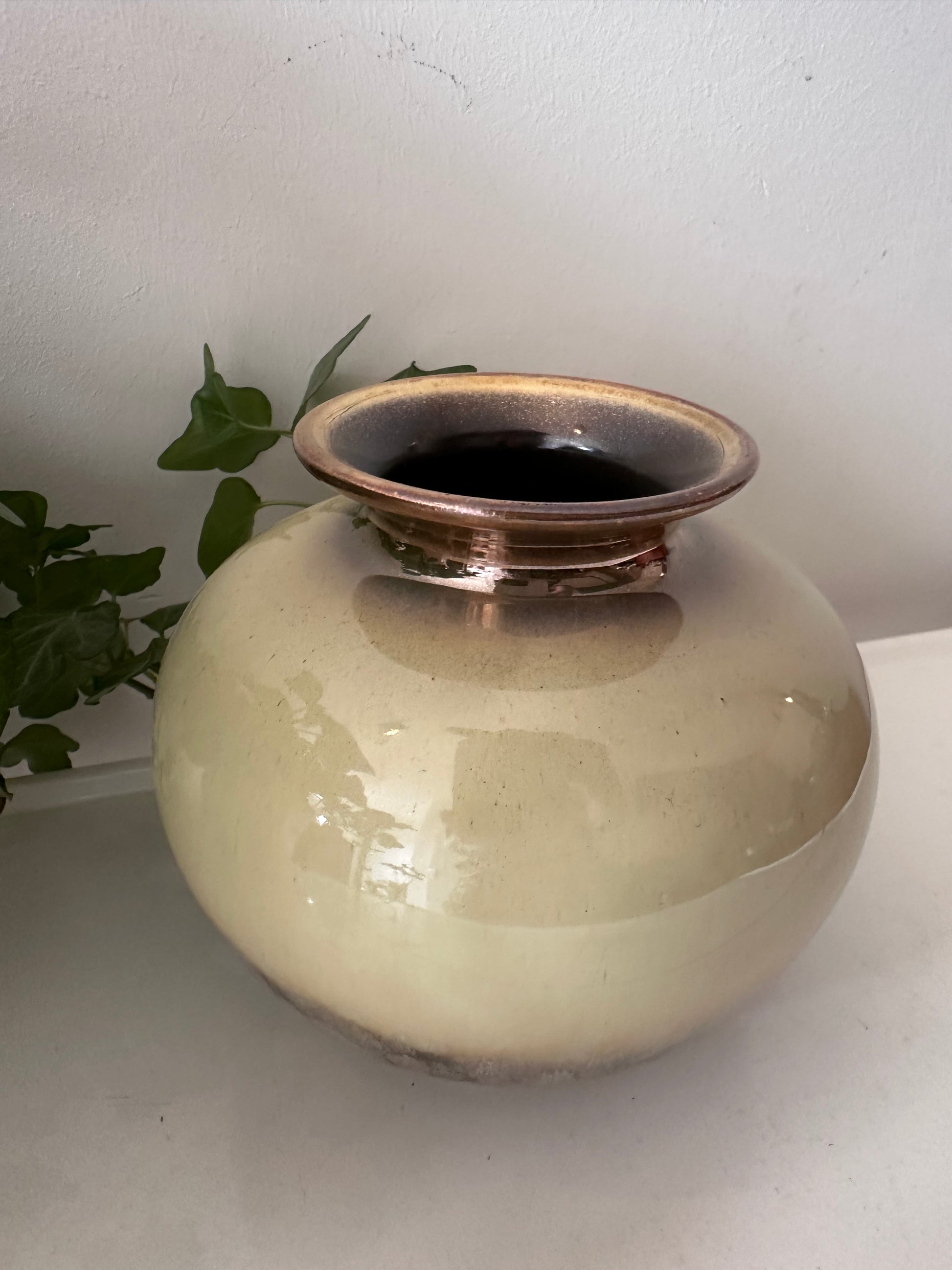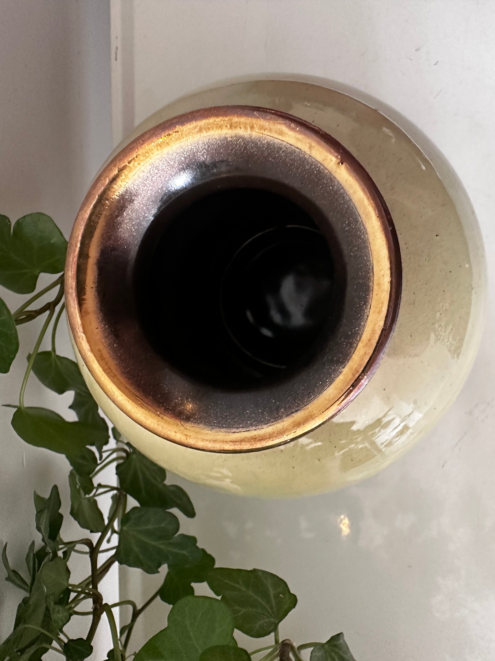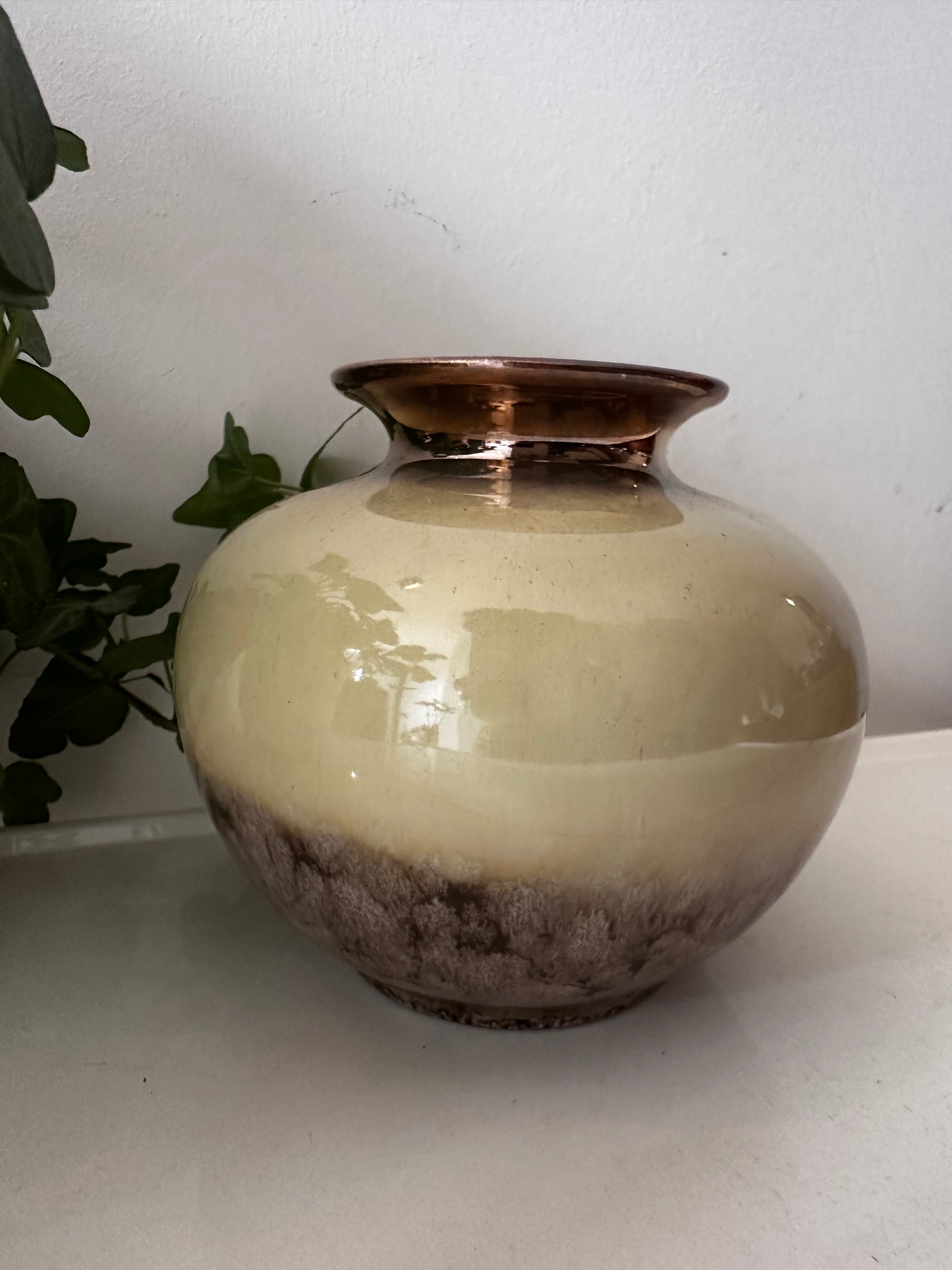 Ben jij ook zo dol op West Germany vazen? Hier heb ik weer een prachtig exemplaar! Een prachtige beige bruine kleur die van licht naar donker overloopt. Hals afgewerkt met een goudkleurige rand. Vaas is gemerkt onder en in een prachtige vintage staat. Dateert jaren 60 en is afkomstig uit Duitsland
