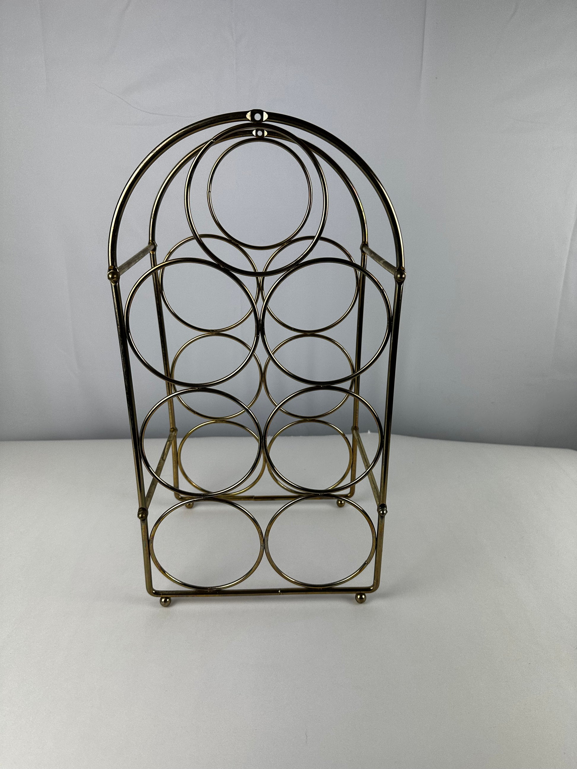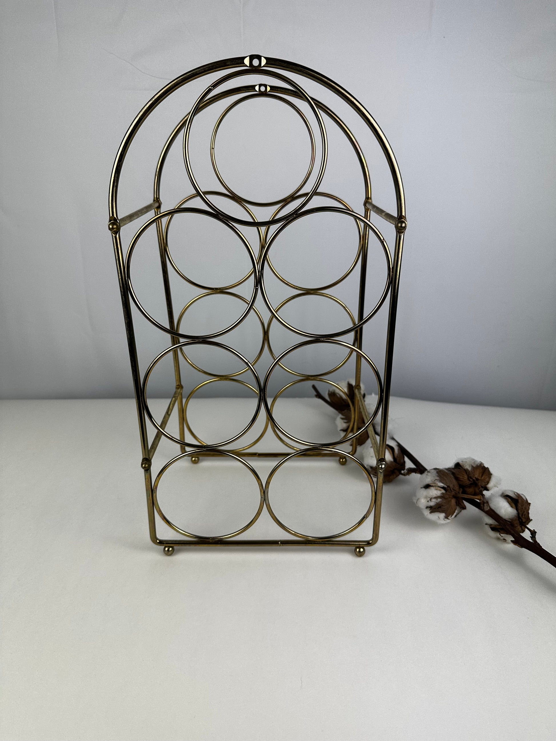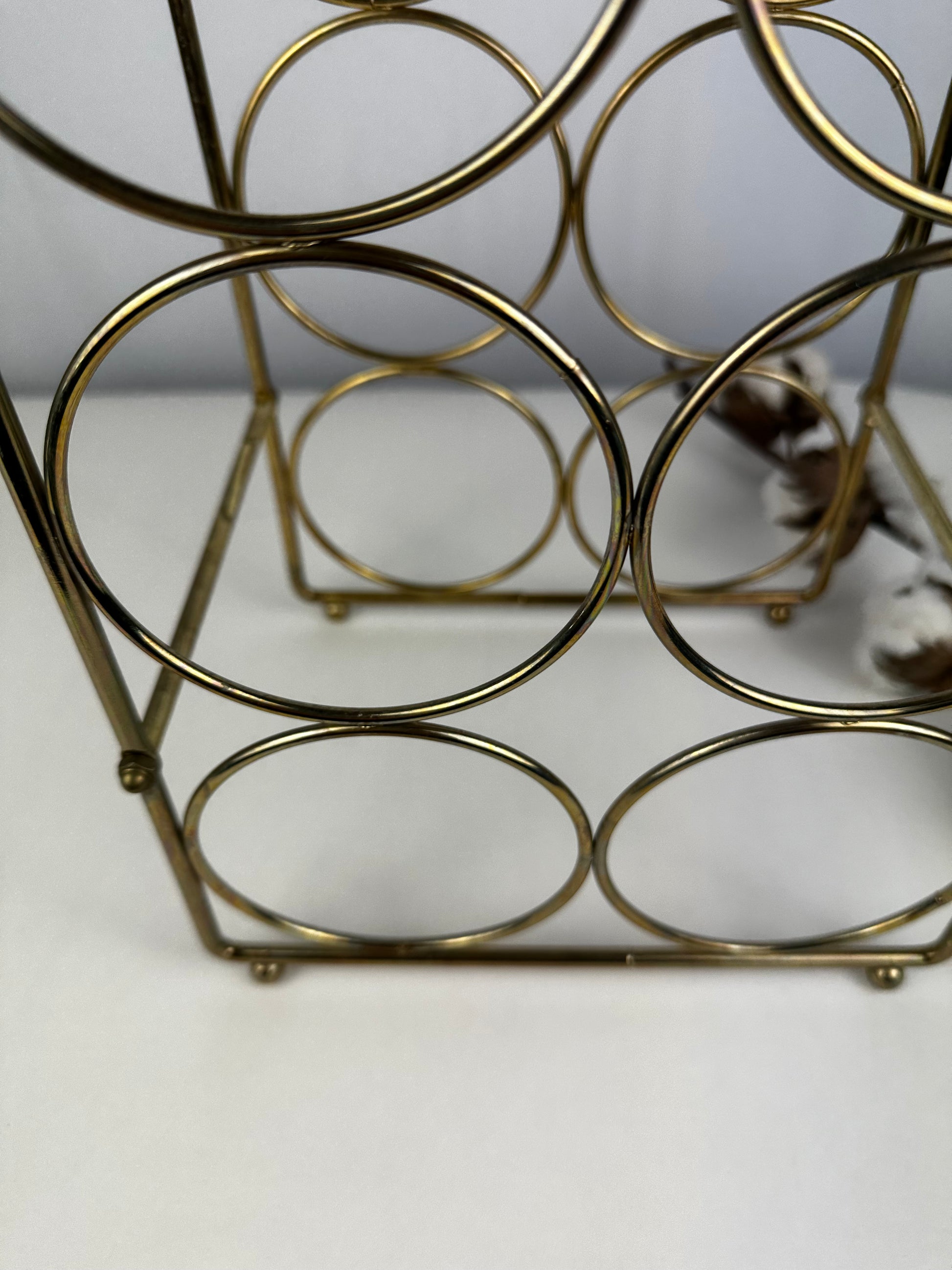 Wat een leukerd dit messing wijnrekken. Je kan er 7 flessen in kwijt. Het rekje is in een mooie vintage staat.