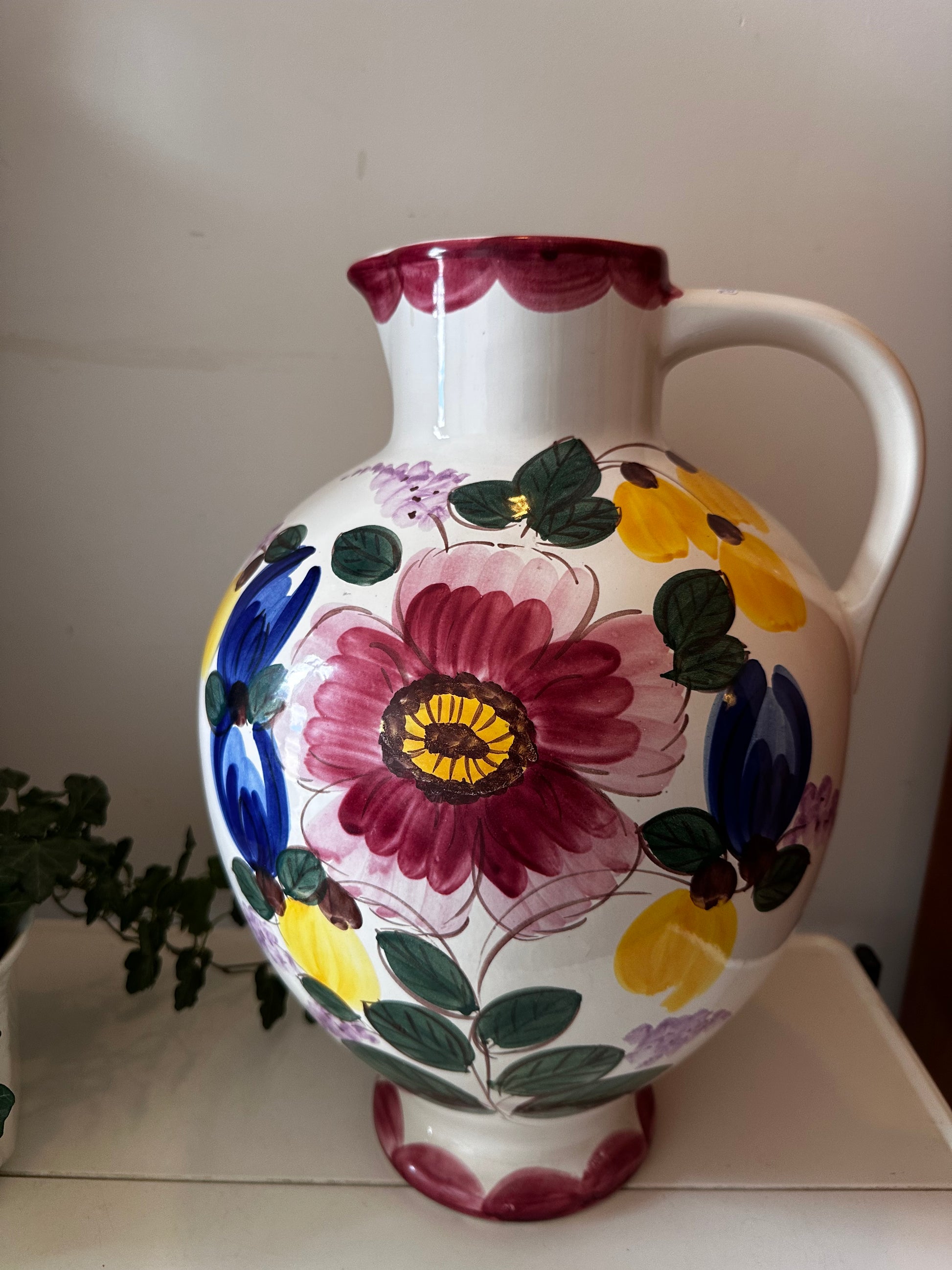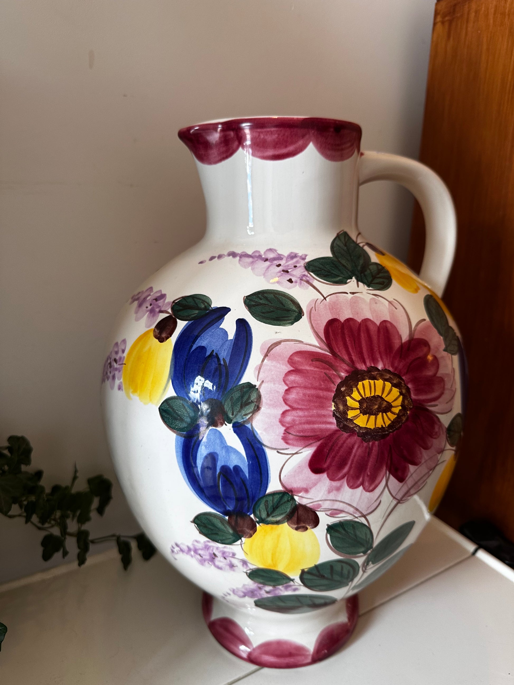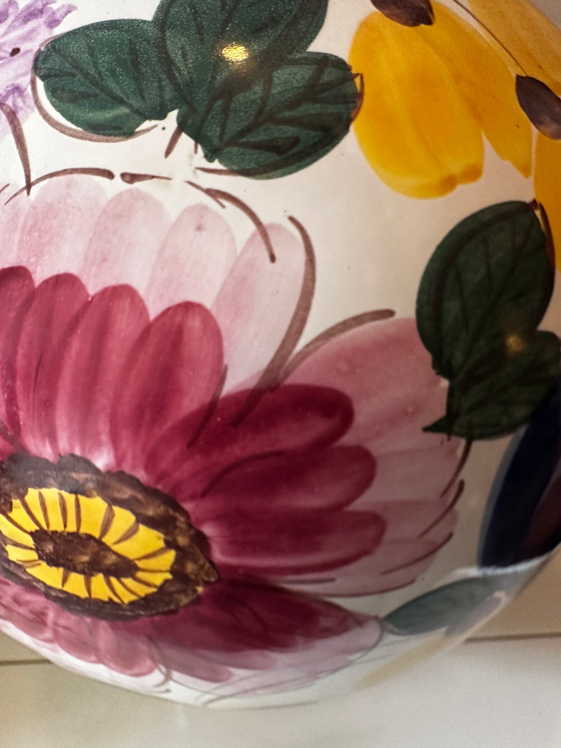 Supergave handbeschilderde vaas met een mooi bloemmotief. Gemaakt van keramiek en is gemerkt. Q41.