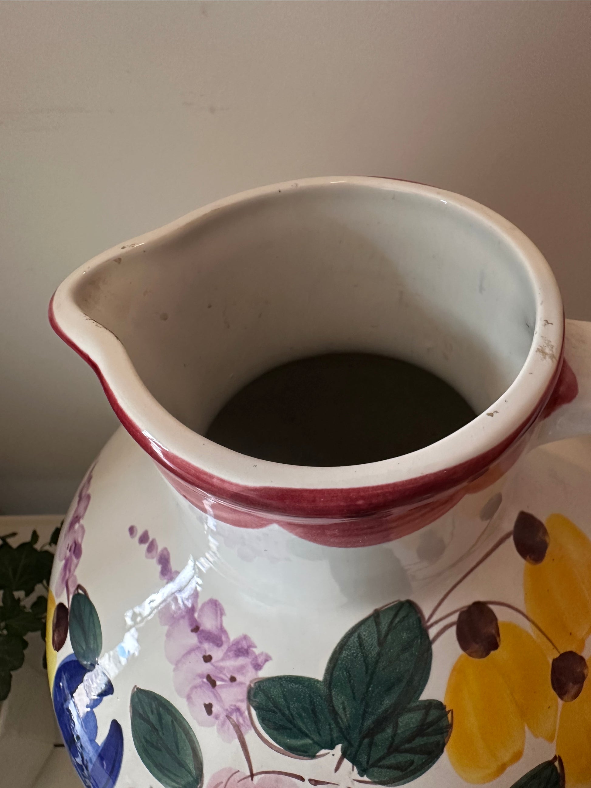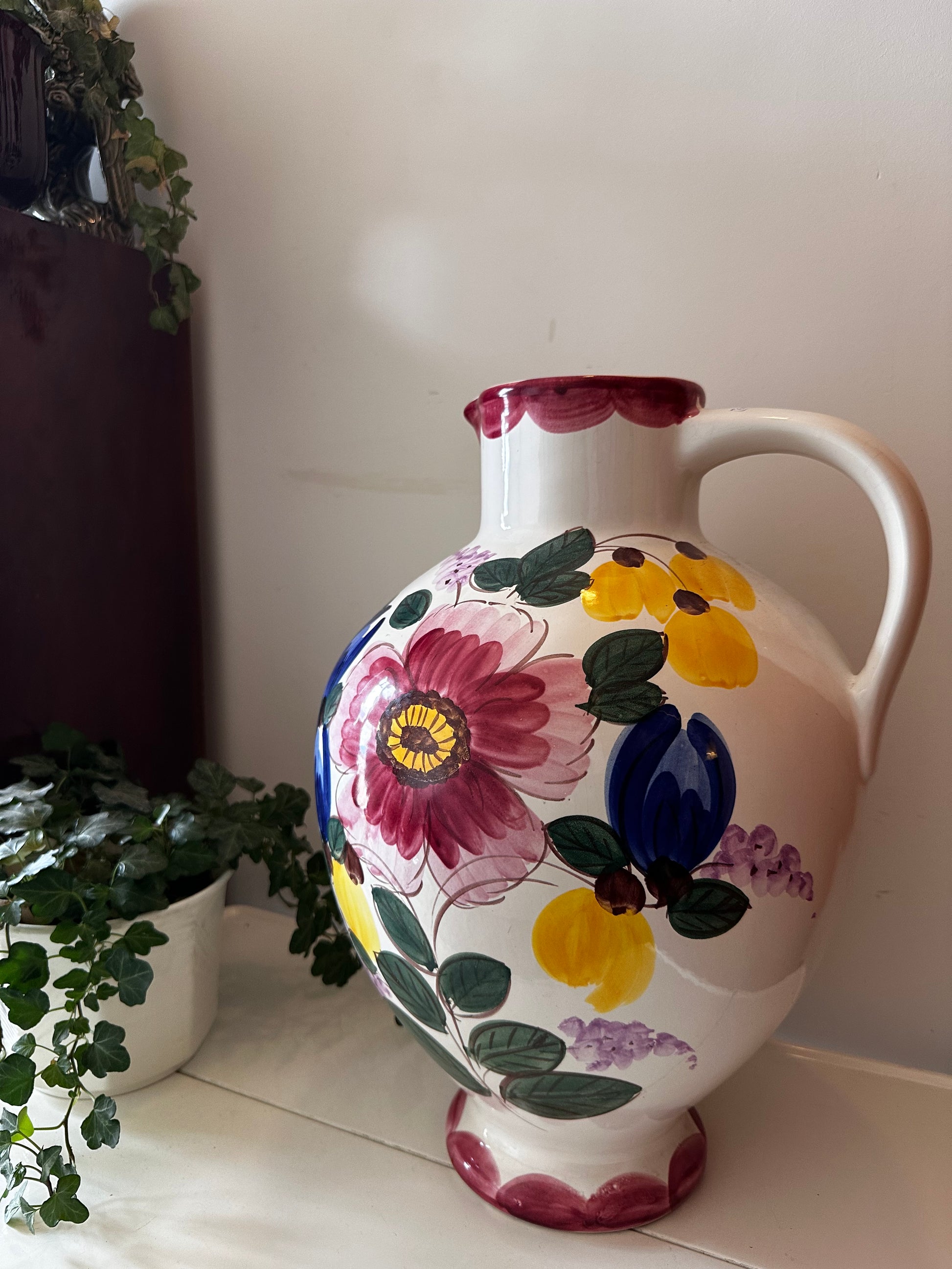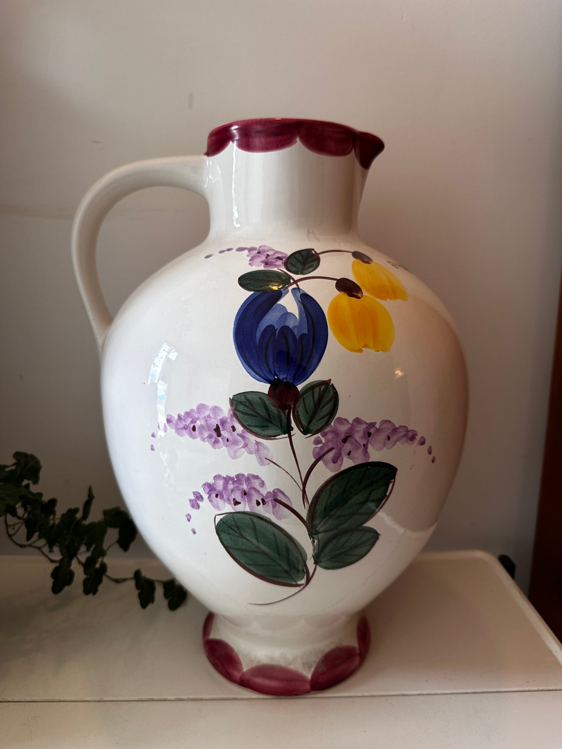 Supergave handbeschilderde vaas met een mooi bloemmotief. Gemaakt van keramiek en is gemerkt. Q41.
