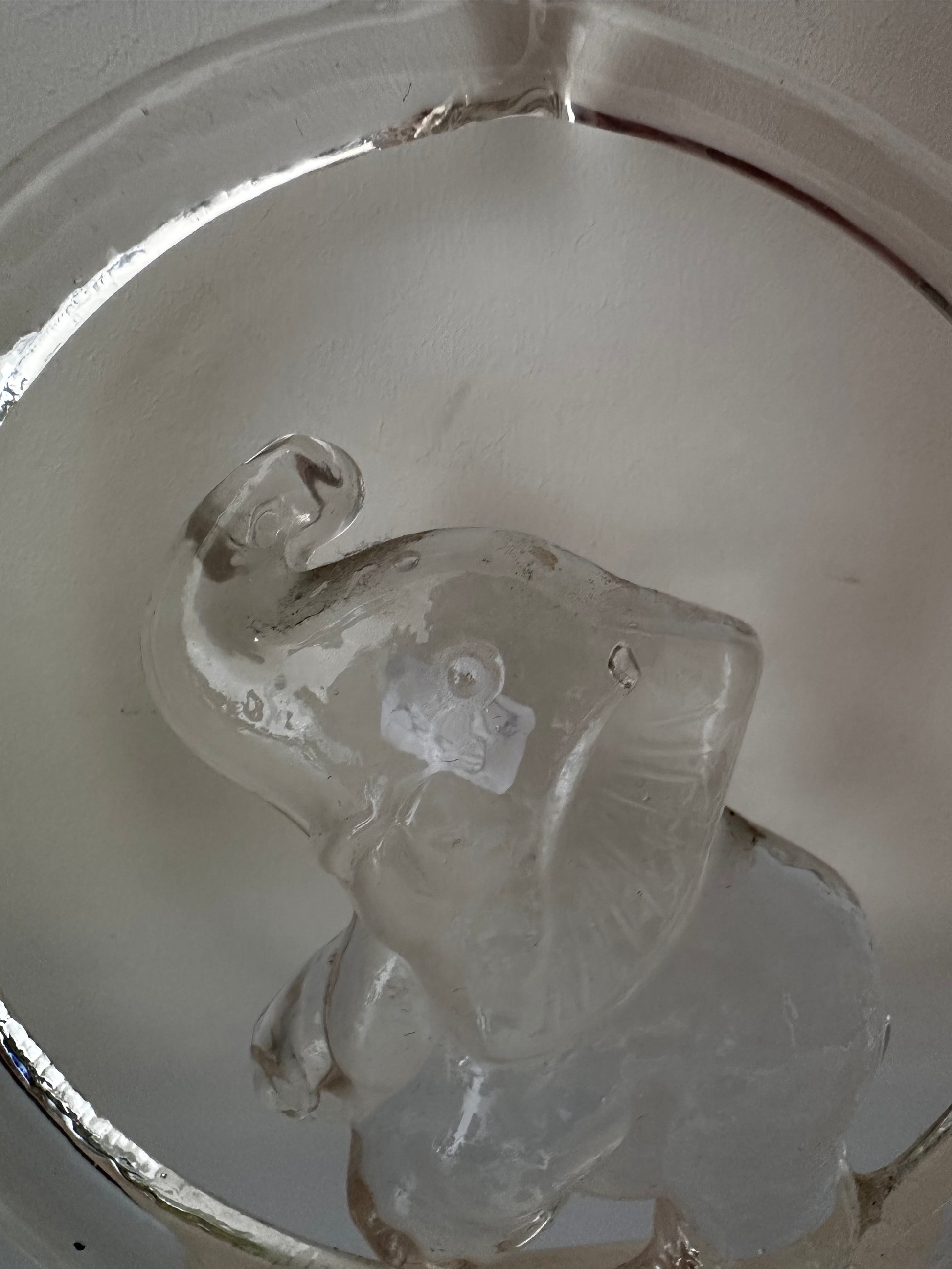 Zweeds designstukje van helder glas met een olifant in reliëf – leuk detail voor in het raam of aan de muur. Afkomstig van Kosta Boda, uit de bekende serie decoratieve hangers uit de jaren ’70.